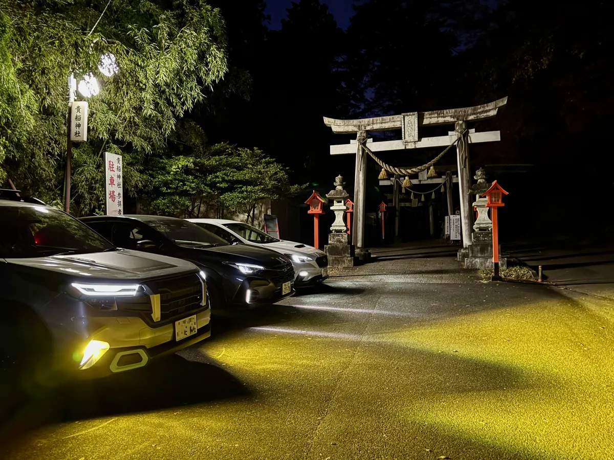投稿を表示絶景の前に並ぶ3車種3台、そして夜の神社に停まる3台からの焼き鳥で締め❣️素敵な往路ツアーだったのですね😄