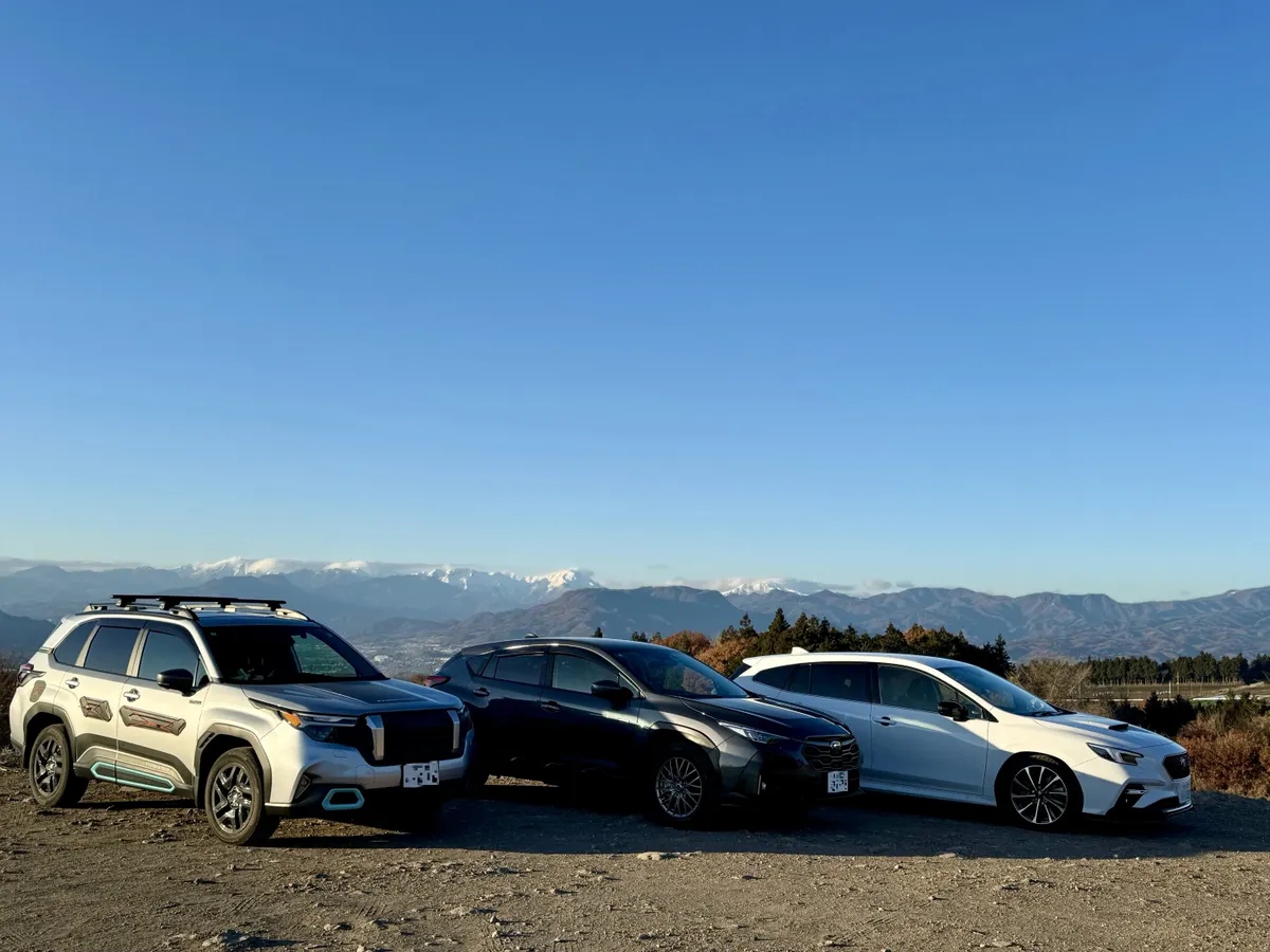 青い空と向こうに見える雪を纏った山々にSUBARU車3台!カッコ良すぎます😍