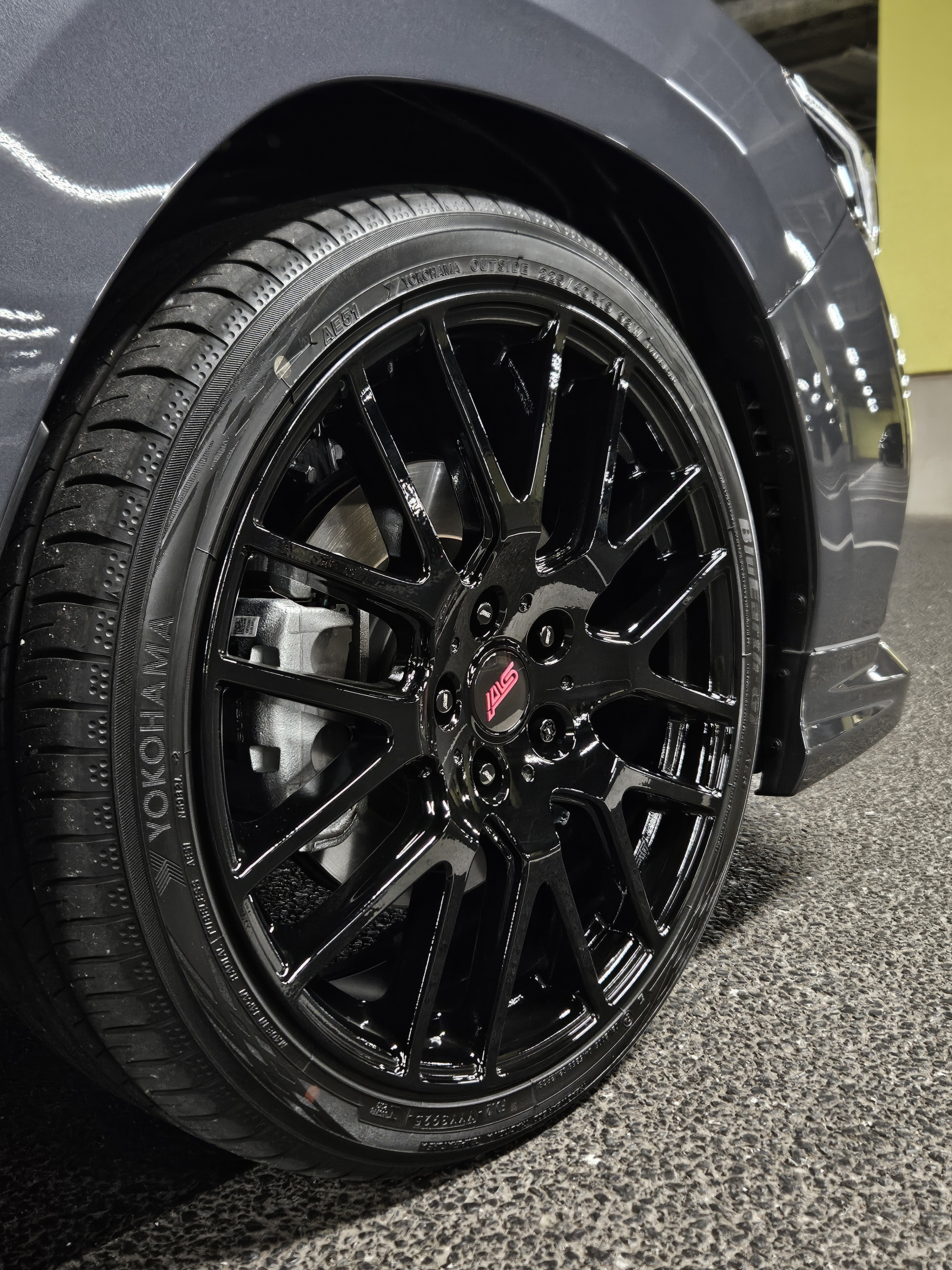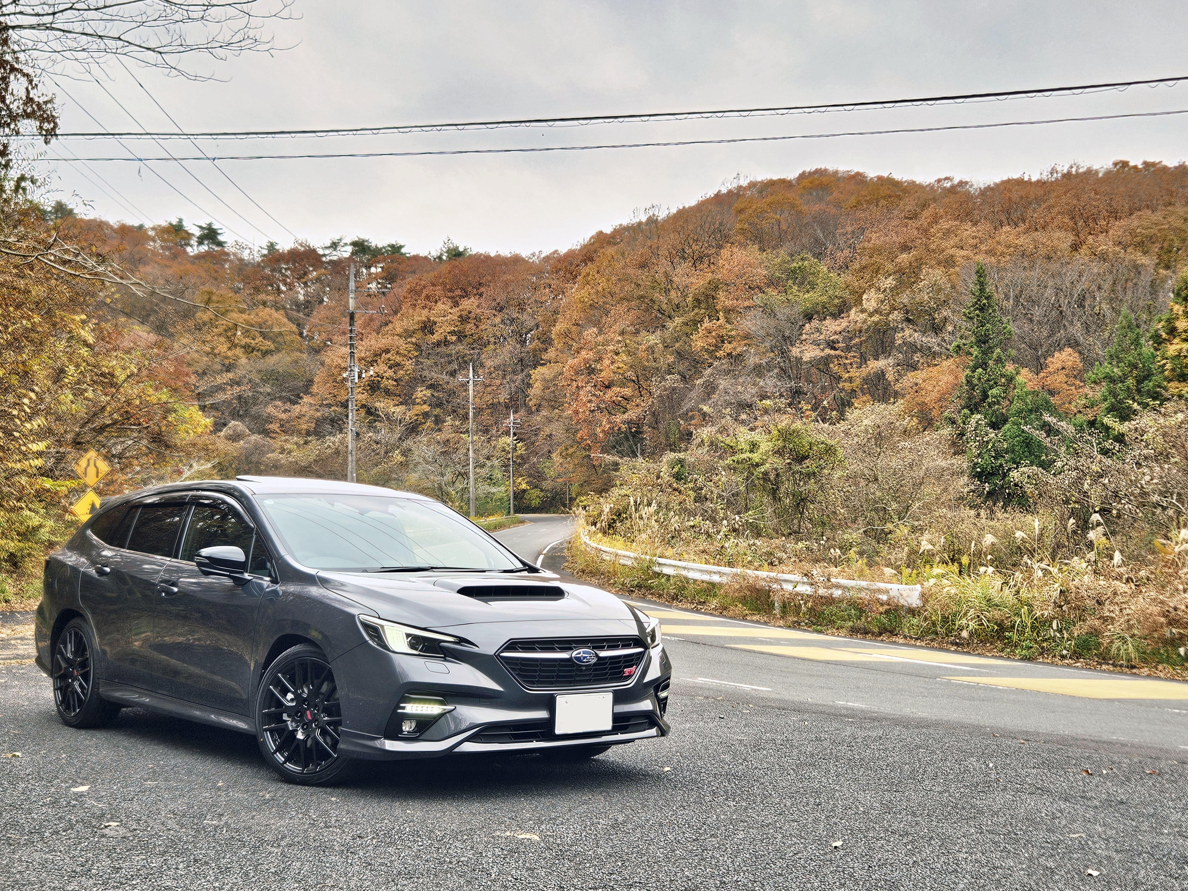 私のレヴォーグには数えるのが怖いくらいオプションが付いていますが、中でもお気に入りは写真のSTIの19インチホイールです。