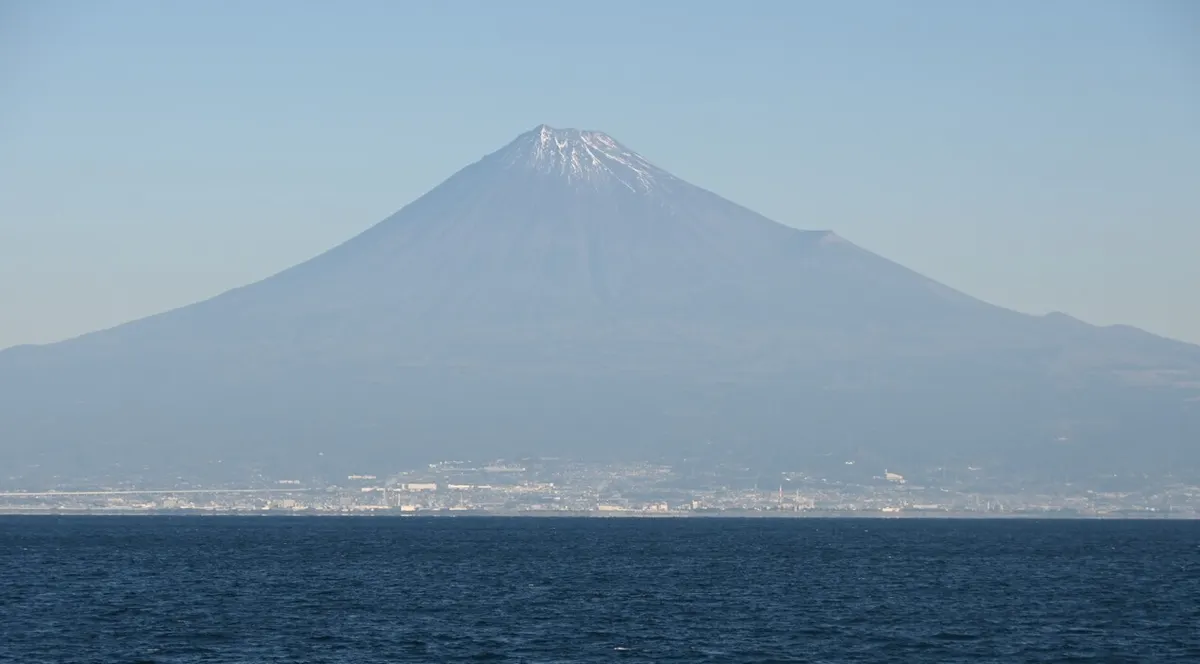 念願の海からの富士山。欲を言えばもう少し雪があると・・・