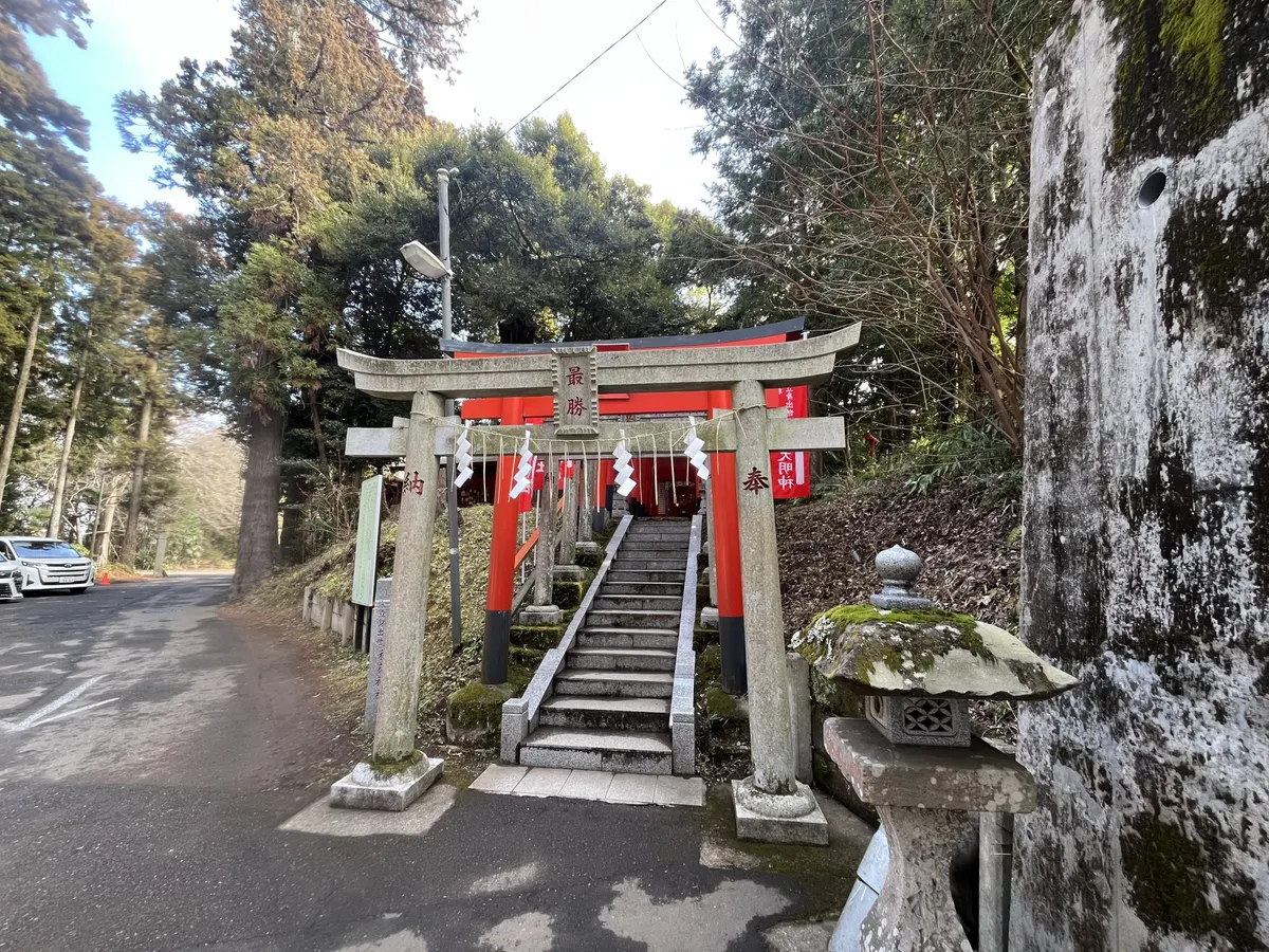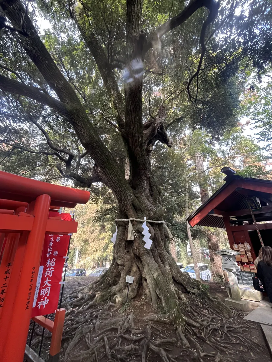 次に大杉神社。神社の周辺にはたくさん杉が生えてました。本殿はミスで撮れなかったですが、すぐ横の小さな神社と鳥居、境内で1番でかいであろう杉を撮りました。