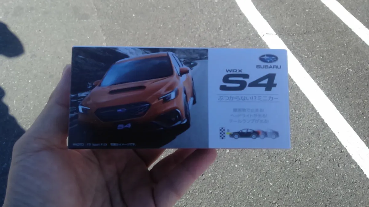 ようやく初体験を行い、記念にWRX S4のぶつからないミニカーをいただきました。