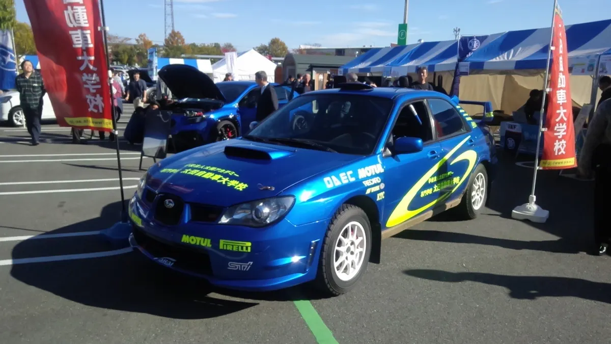 太田自動車大学校さんの展示車は、どことなくSWRT(スバルワールドラリーチーム)を思い出させる様なカラーリング。