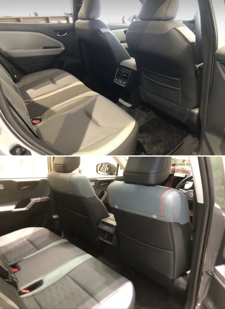 シートはどちらも撥水性のある素材になっていました。RAV4はグリーンやレッドのアクセントが際立つカラフルな内装なのに対して、フォレスターではブラック基調ですね。これが都会的な上級グレードとなると、RAV4のZはブラック内装のみに対して、フォレスターのPremiumではプラチナやブラウンレザーなどカラフルな内装と選べるので対照的ですね🤔