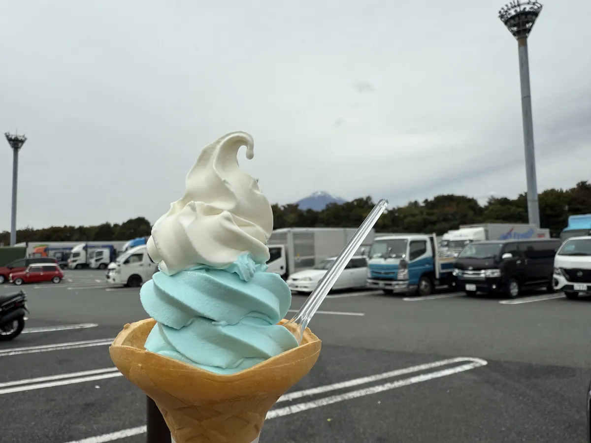 5月にも食べた富士山ソフトは青い部分はマイルドなソーダ味🗻