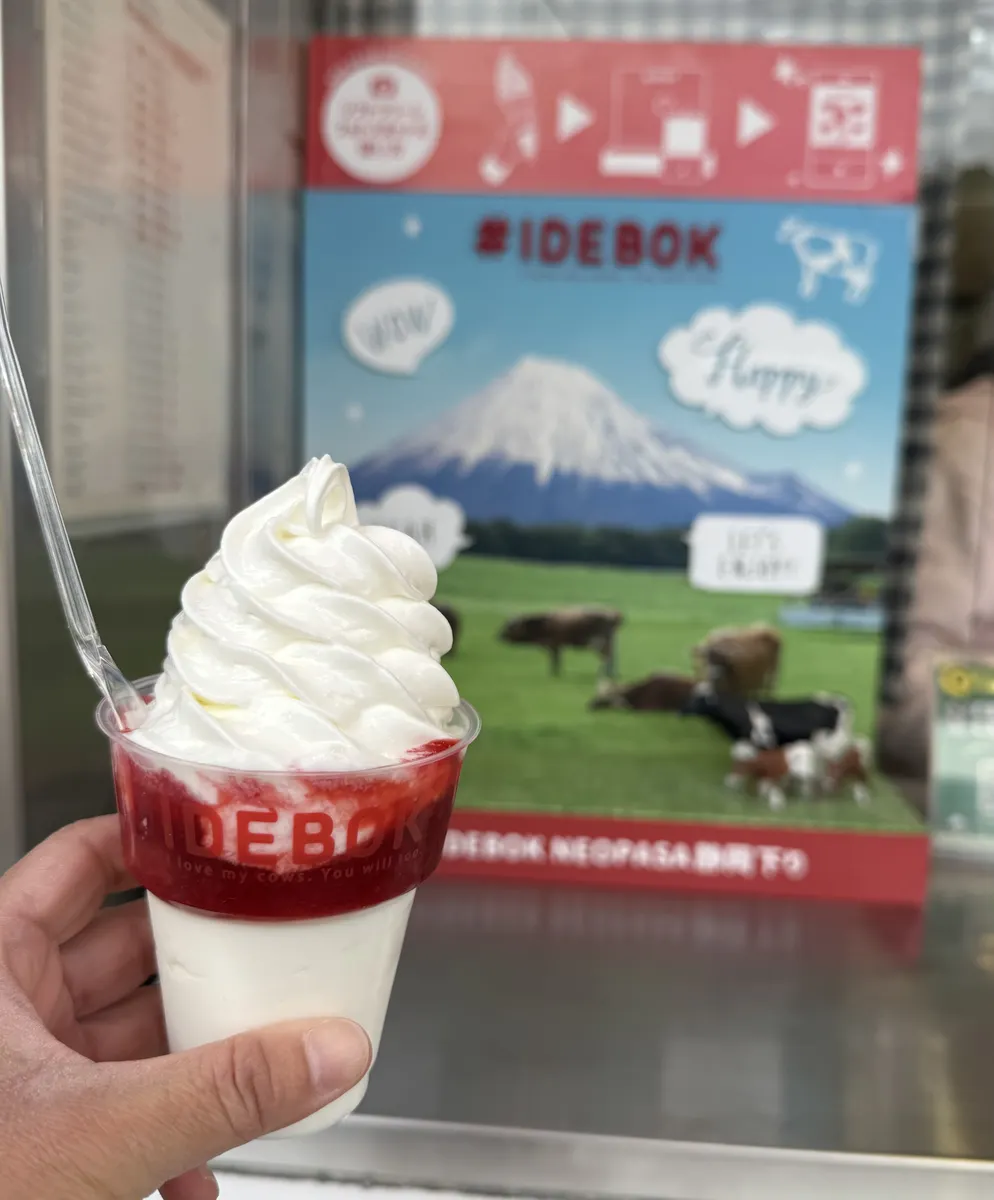 その後は眠気を感じて静岡SAで定番の「いでぼく」の苺ヨーグルトソフトを🍓