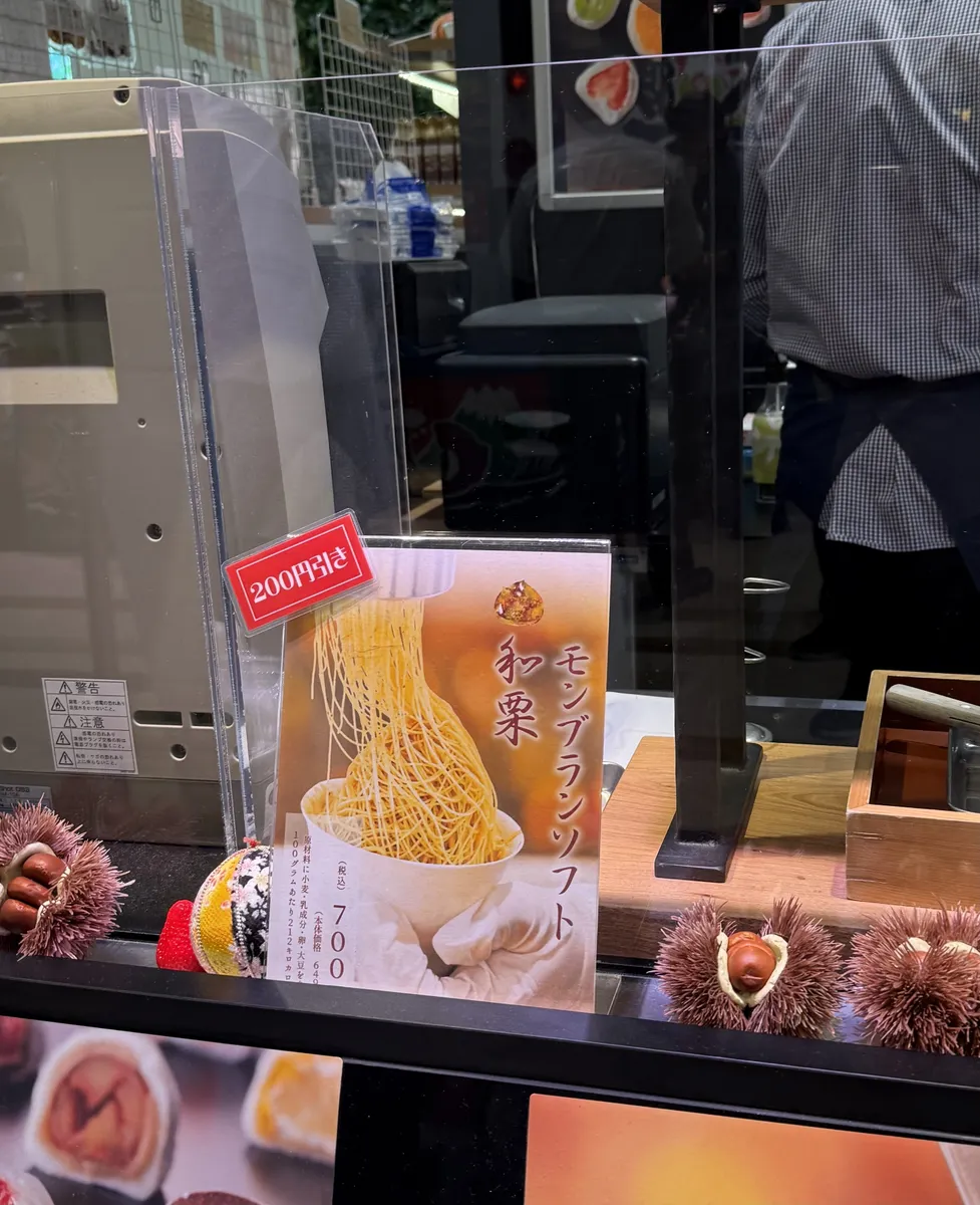 拍子抜けしたところに目に飛び込んできたモンブランソフトはナント¥200引き!