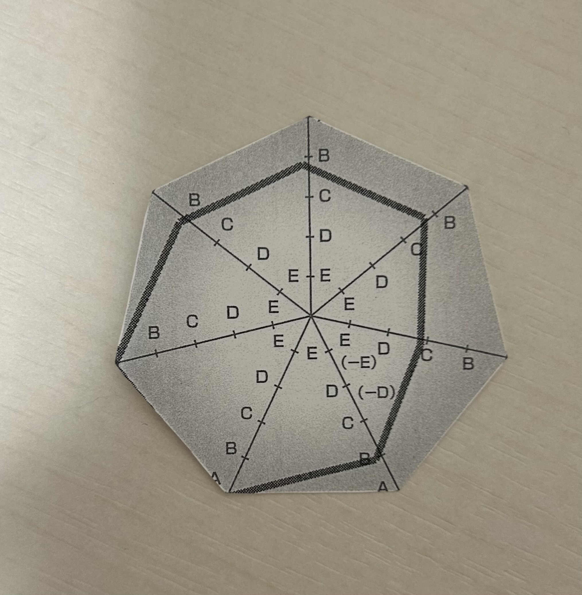 自動車学校入校時にやったOD式安全性テストの結果に書いてあった正七角形のレーダーチャートです。