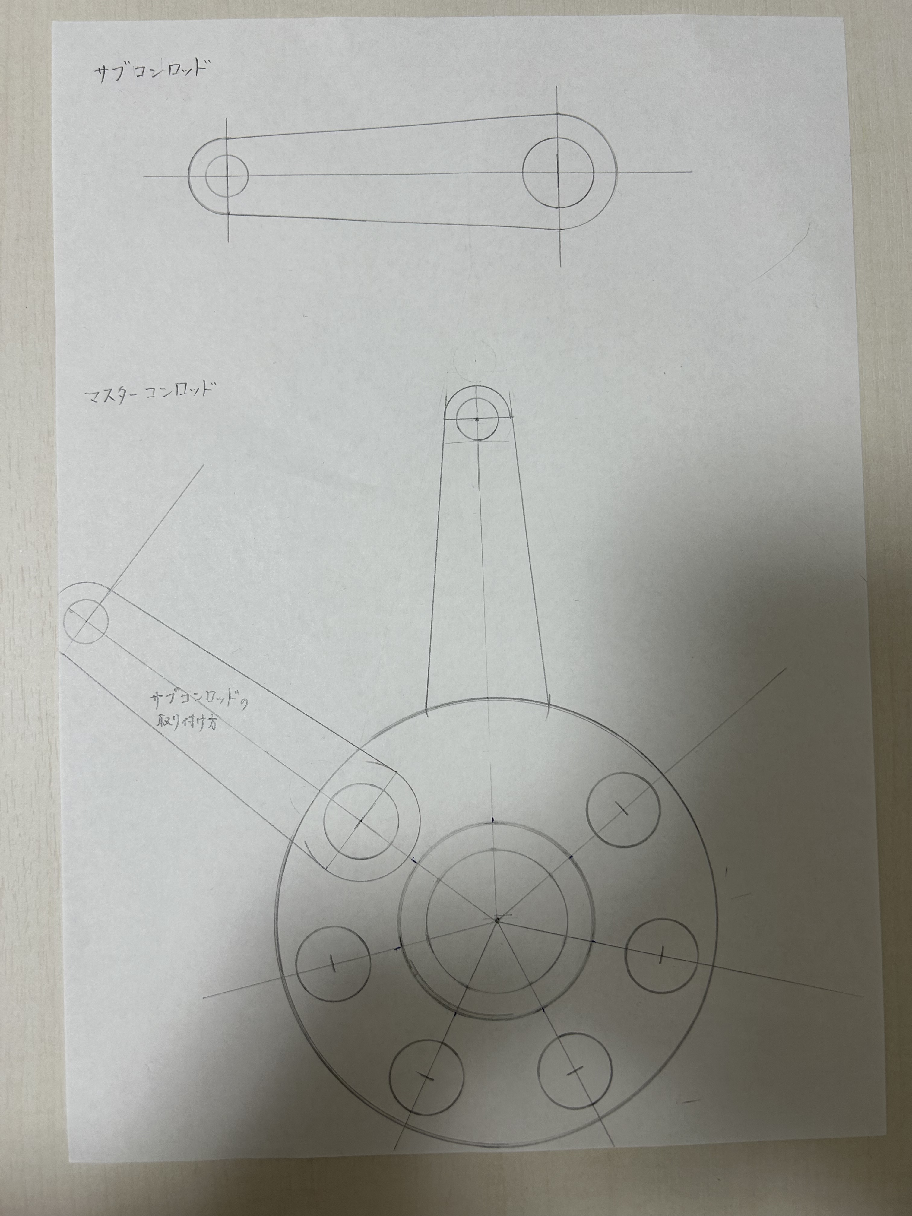 しかし、正七角形が書いてある紙を見つけたので、星形7気筒の作成をしようと思いました。