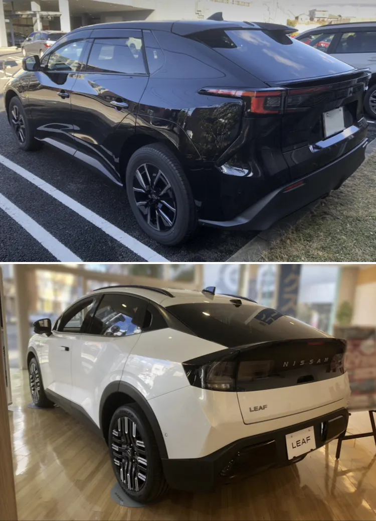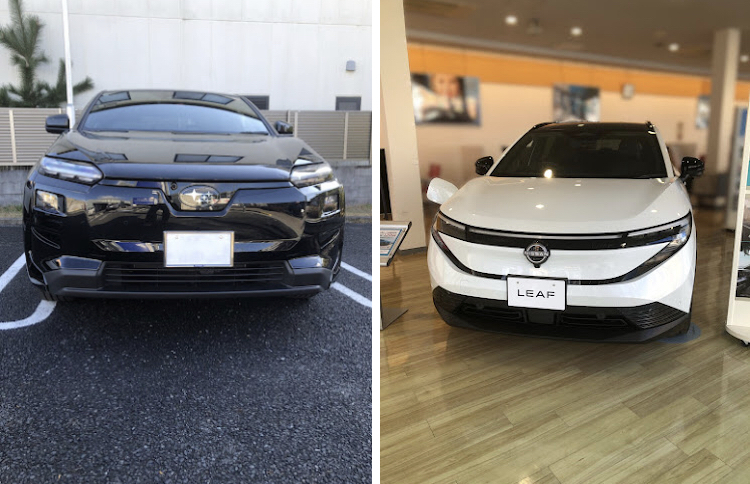 リーフは新型でクーペフォルムになりましたね‼ 写真ではソルテラくらいの存在感があるように見えますが、実物は思っていたよりスマートでした。それに対してソルテラは王道的なSUVのフォルムながら、マイナーチェンジでクリーンで都会的なフェイスになったと思います。