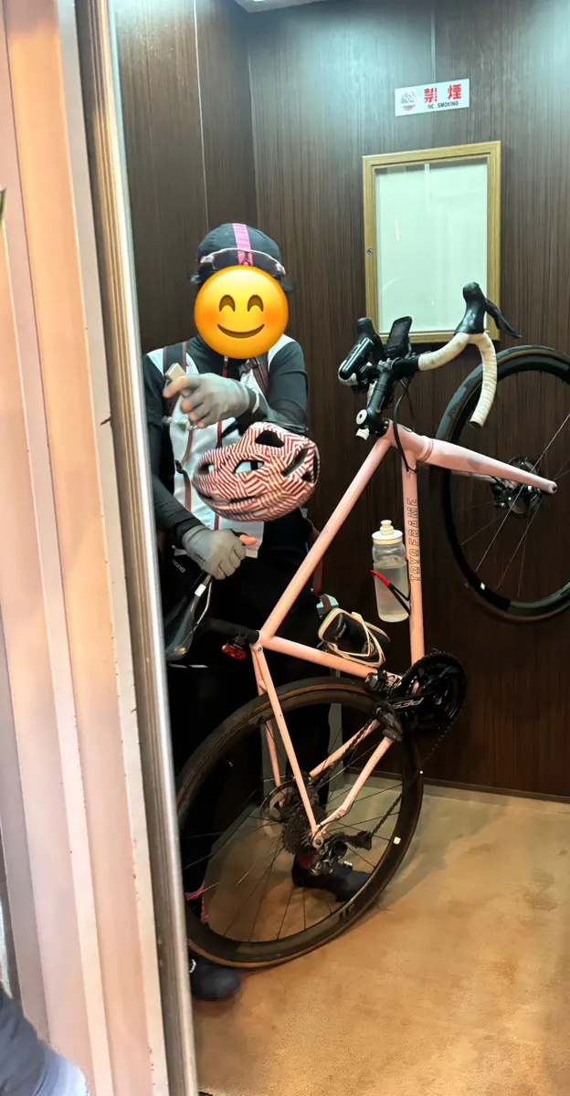 自転車と一緒にエレベーターに。