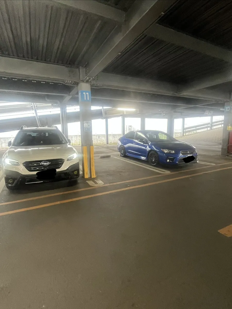 いつも通うカー用品店の駐車場↓1つ開けて柱挟んでますがっ😆