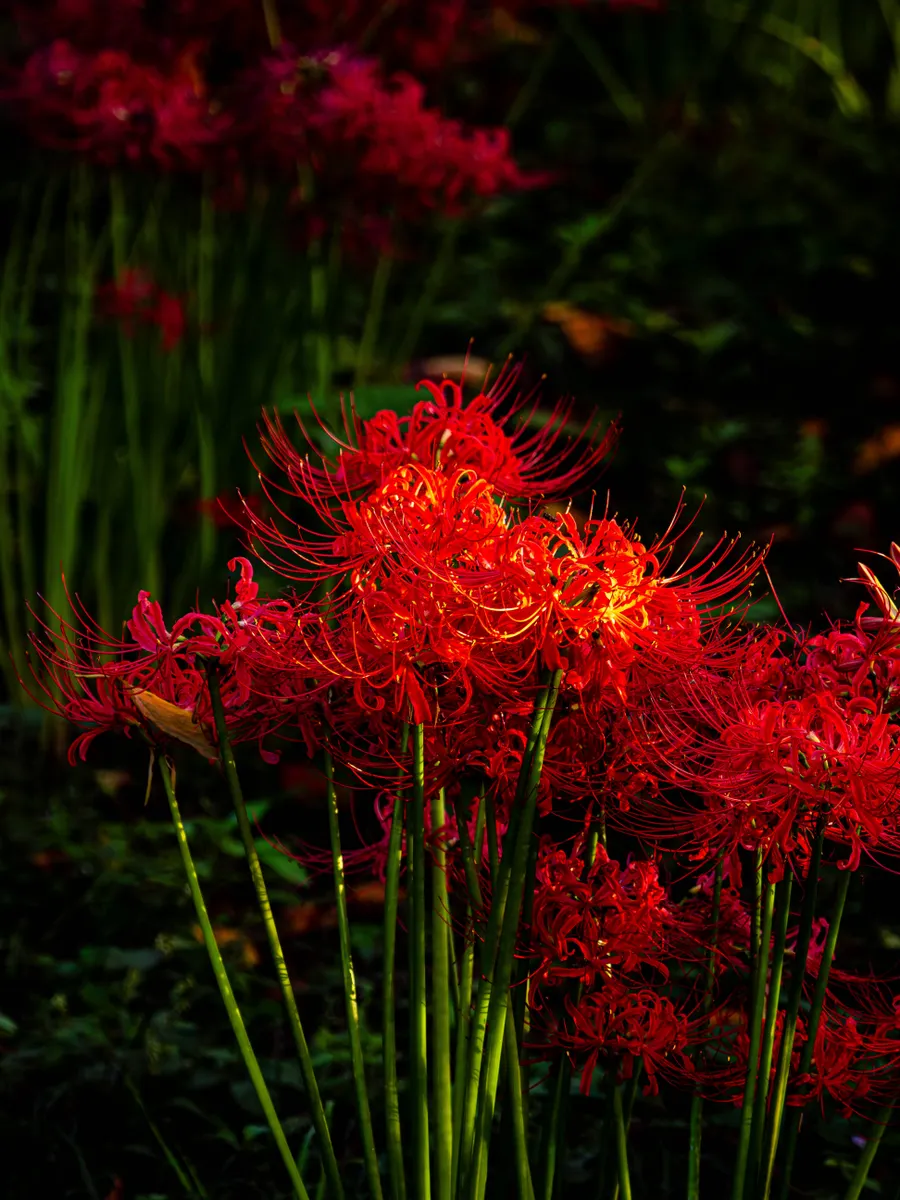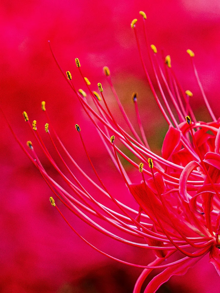 彼岸花、咲き具合も良く6枚目のお写真の赤の中での花粉の黄色がとても鮮やかです✨