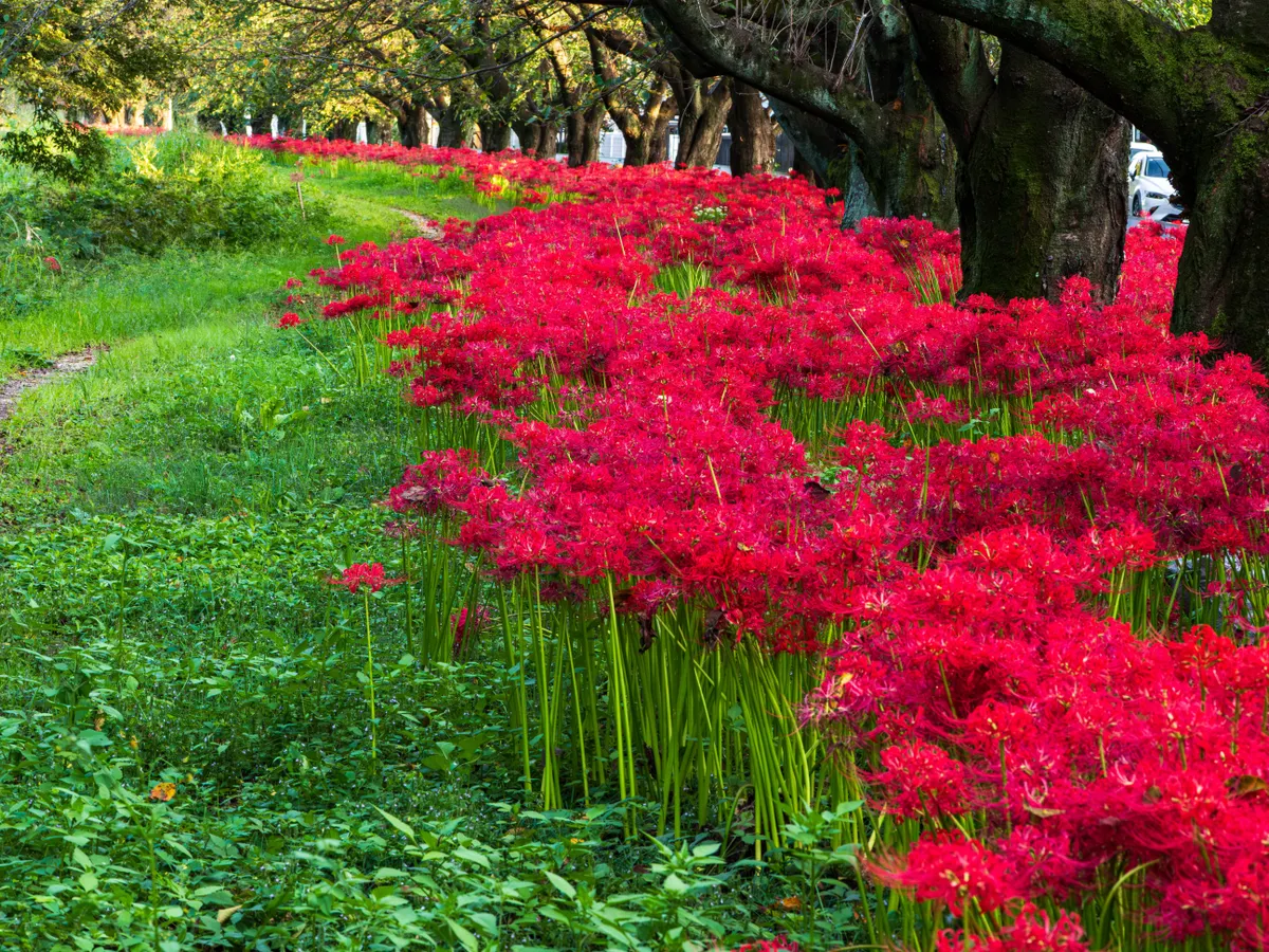 私の近隣でも春は桜、秋は彼岸花の名所になる土手があるのですが、セットのところが多いのでしょうかね。