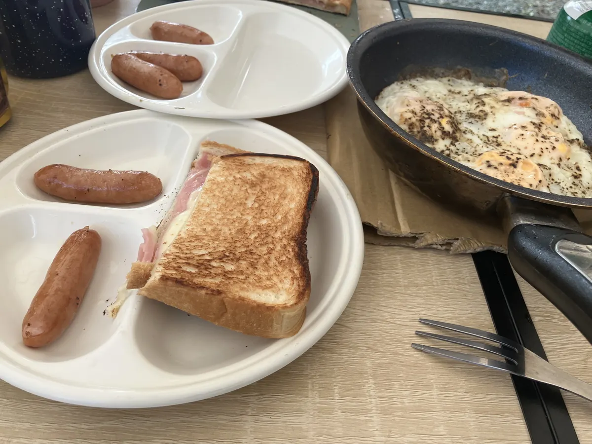 ▼朝食は目玉焼きとホットサンド