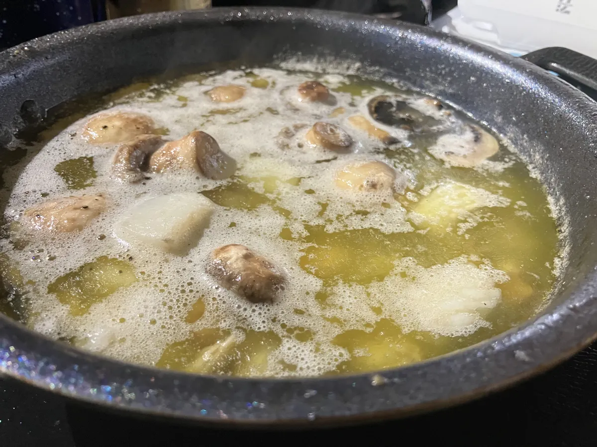 ▼アヒージョ完成、美味い❣️