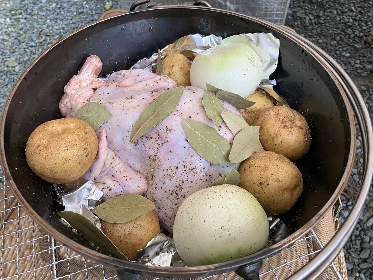 ▼ダッジオーブンにて鶏一羽の蒸し焼き❣️