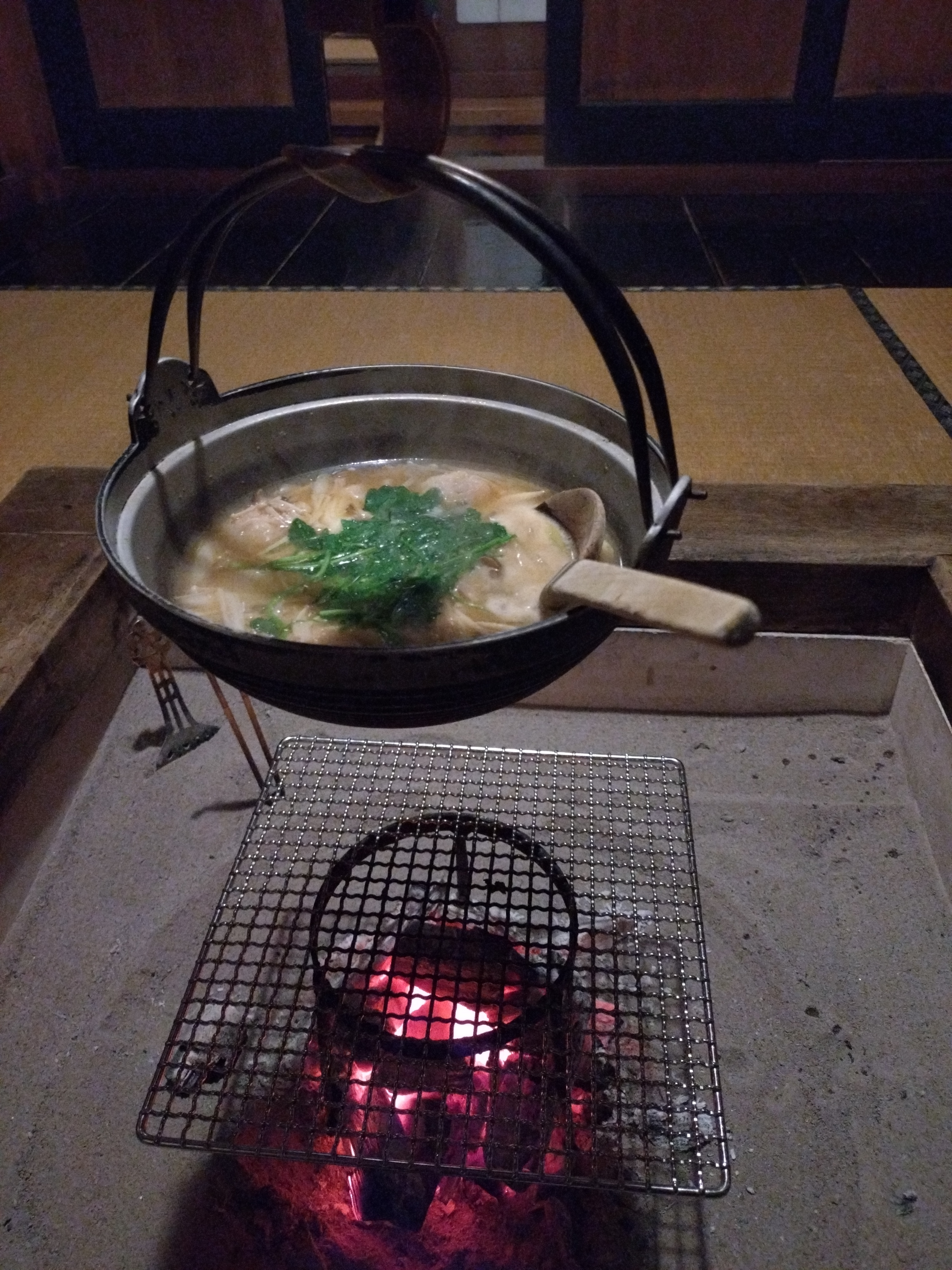 山芋煮の鍋が温かく、最高の味付けでしたね〜美味しかった!囲炉裏の暖かさ雪深い寒さに最高でしたね〜