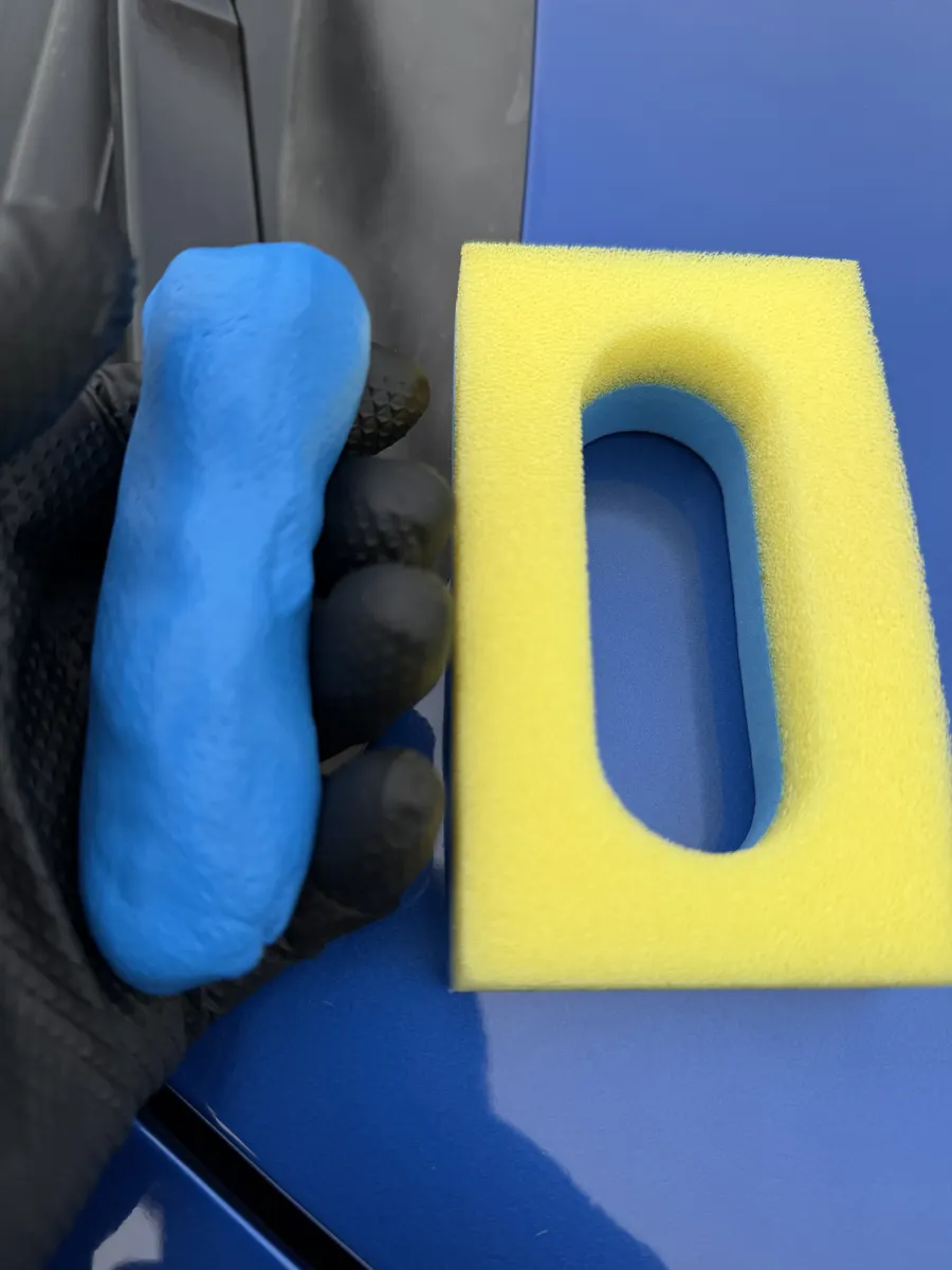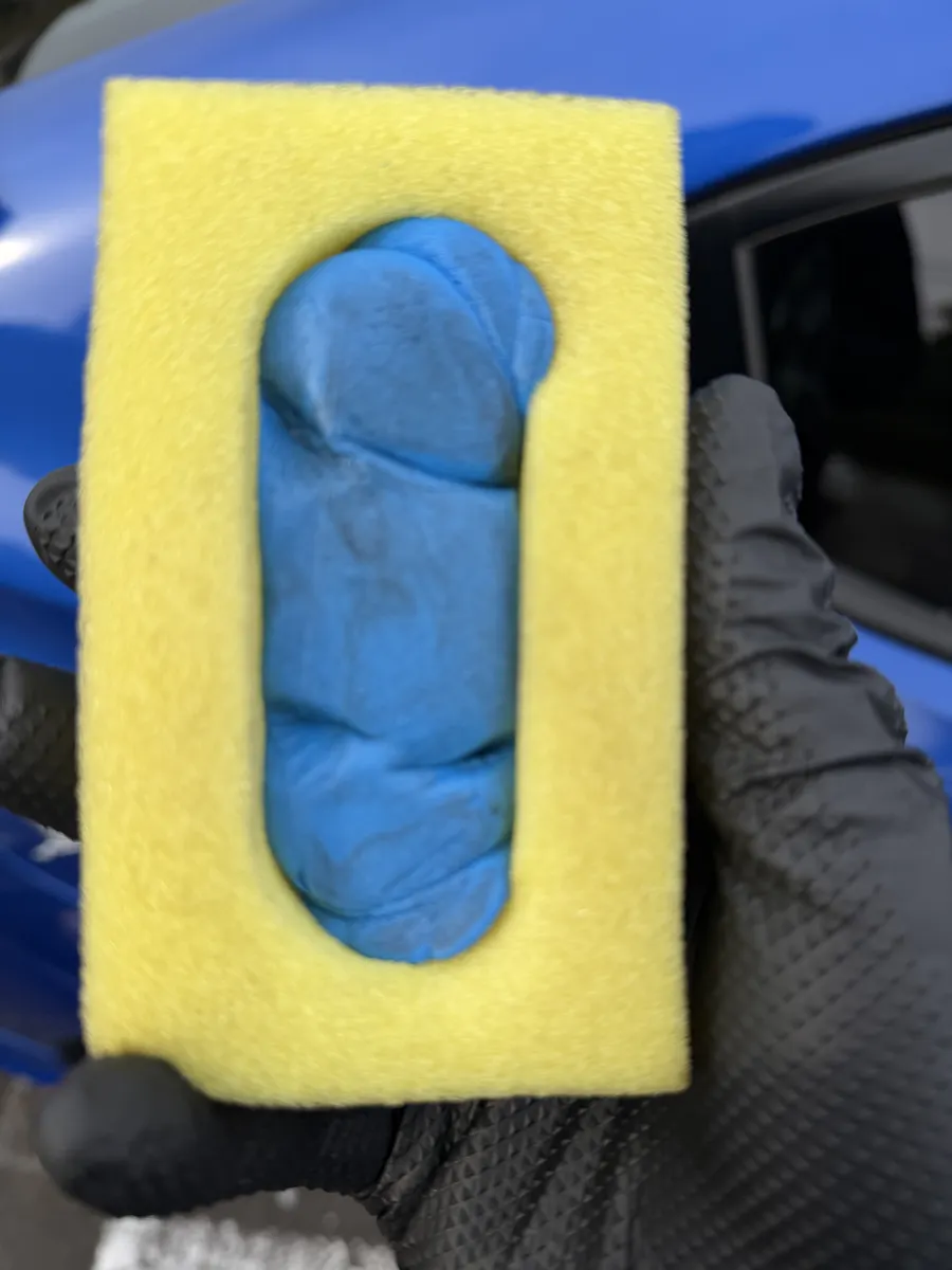 鉄粉取りねんどを専用のスポンジに装着。