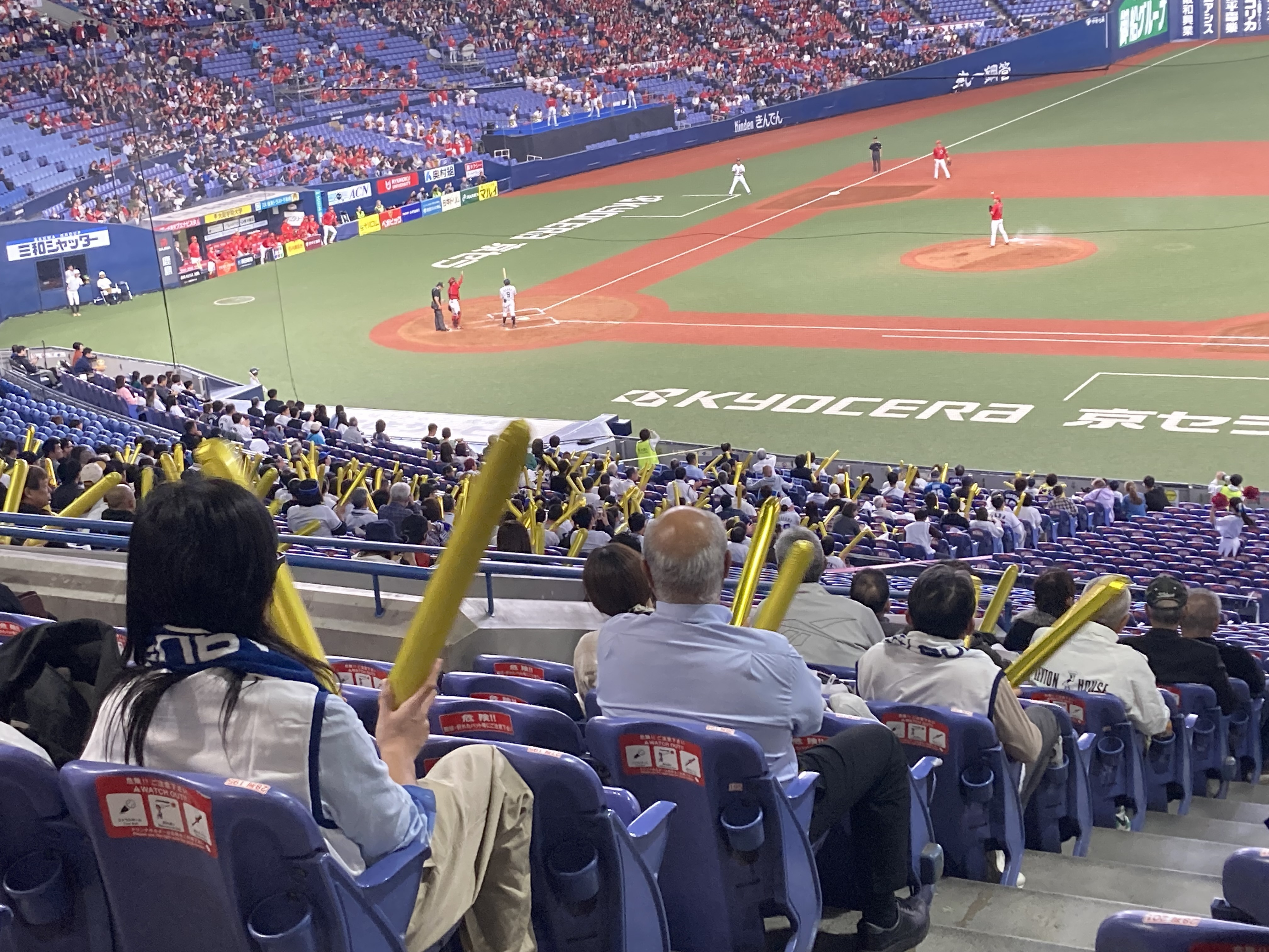 人生初野球観戦というかスポーツ観戦自体初めてでしたが、スティック叩いてるだけでもおもしろい!!そして応援グッズはめっちゃいっぱい入ってた!