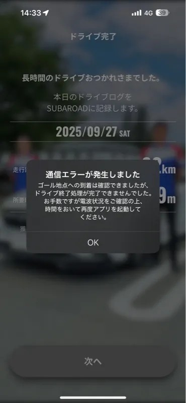 でSUBAROAD Finish🏁の予定がまさかの通信エラー🤣