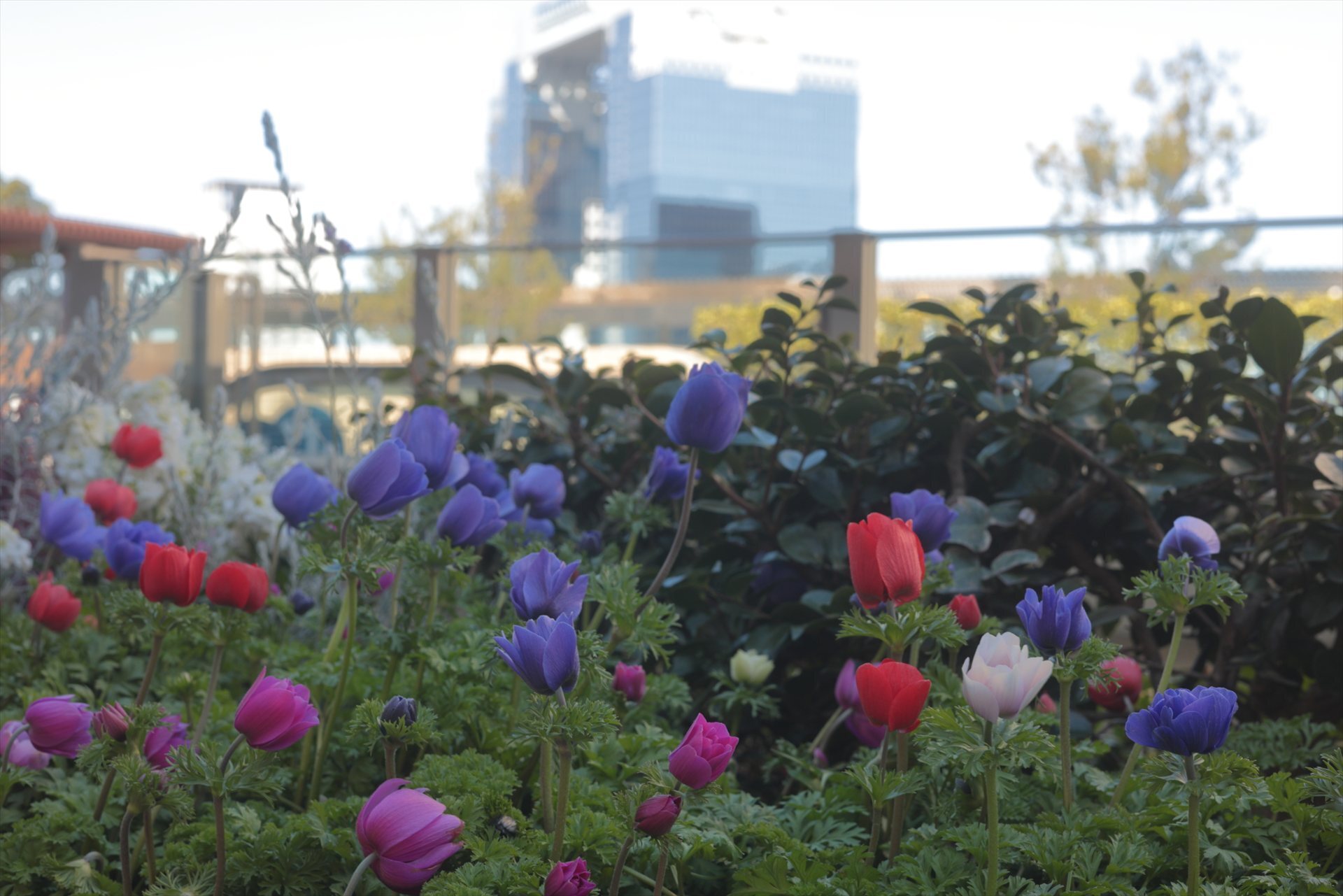 8. 植栽にはもうチューリップが咲いていました。紫のチューリップって変わってますよね。