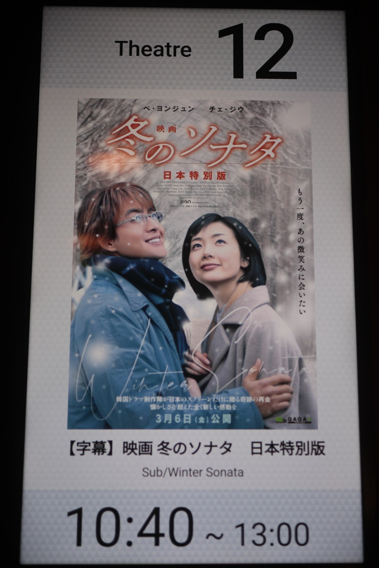 2000年代初頭に日本に韓国フィーバーを巻き起こした伝説の韓流ドラマ「冬のソナタ」が20年の時を越えて4Kリマスターで映画化されるということで、行ってきました♪