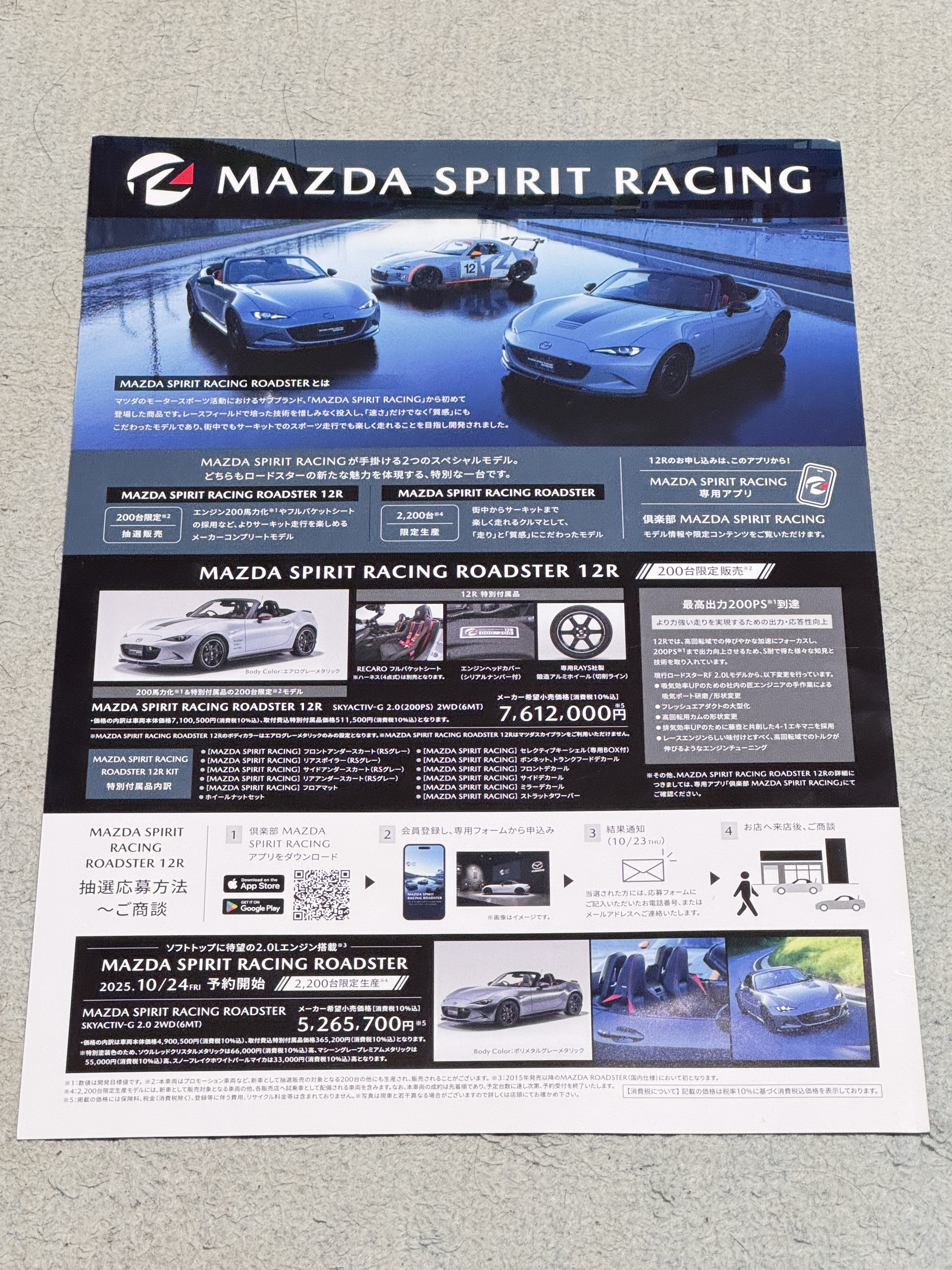 ロードスターを試乗へ行った事があるのでコンプリートカーのDMが届いてました。