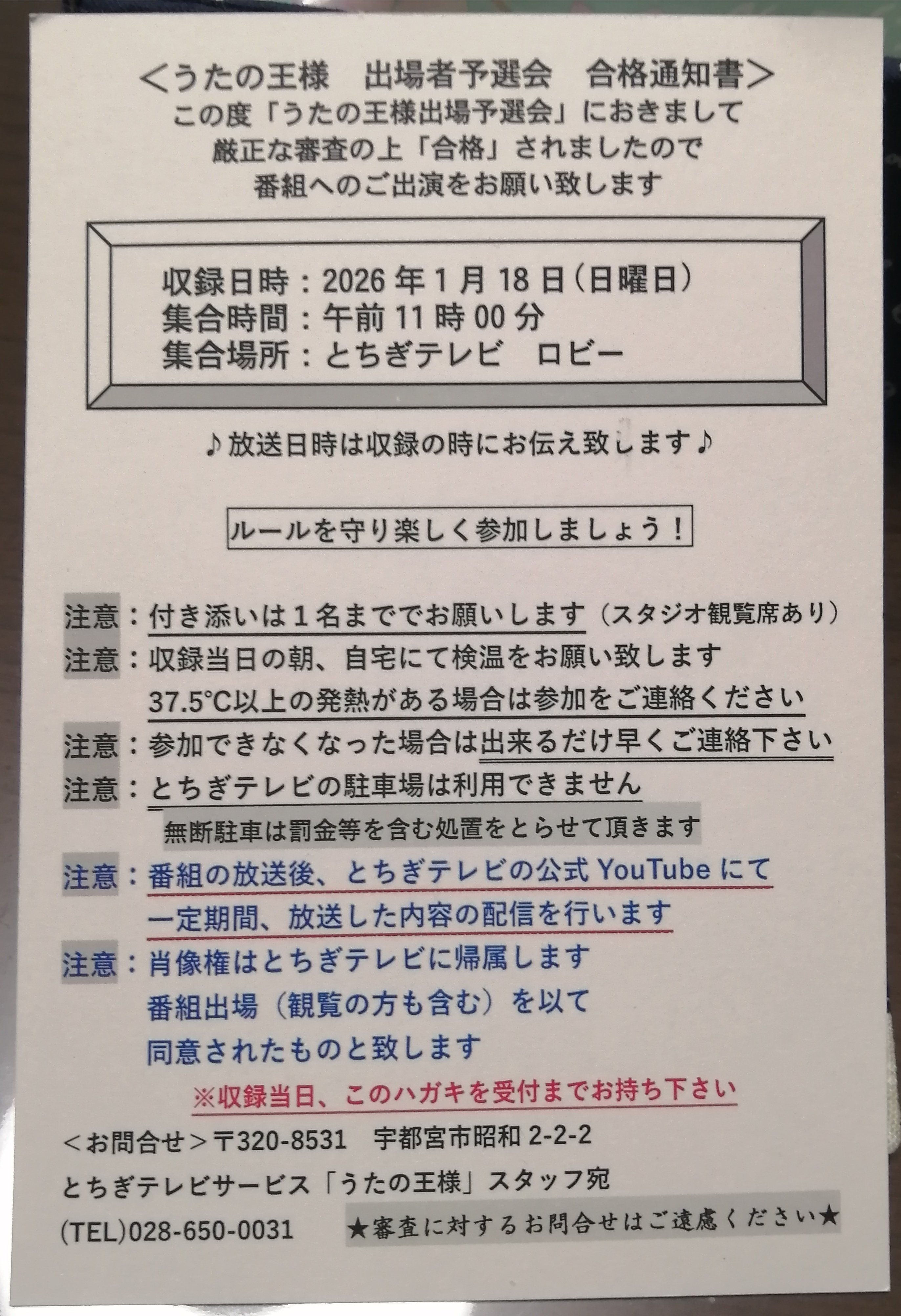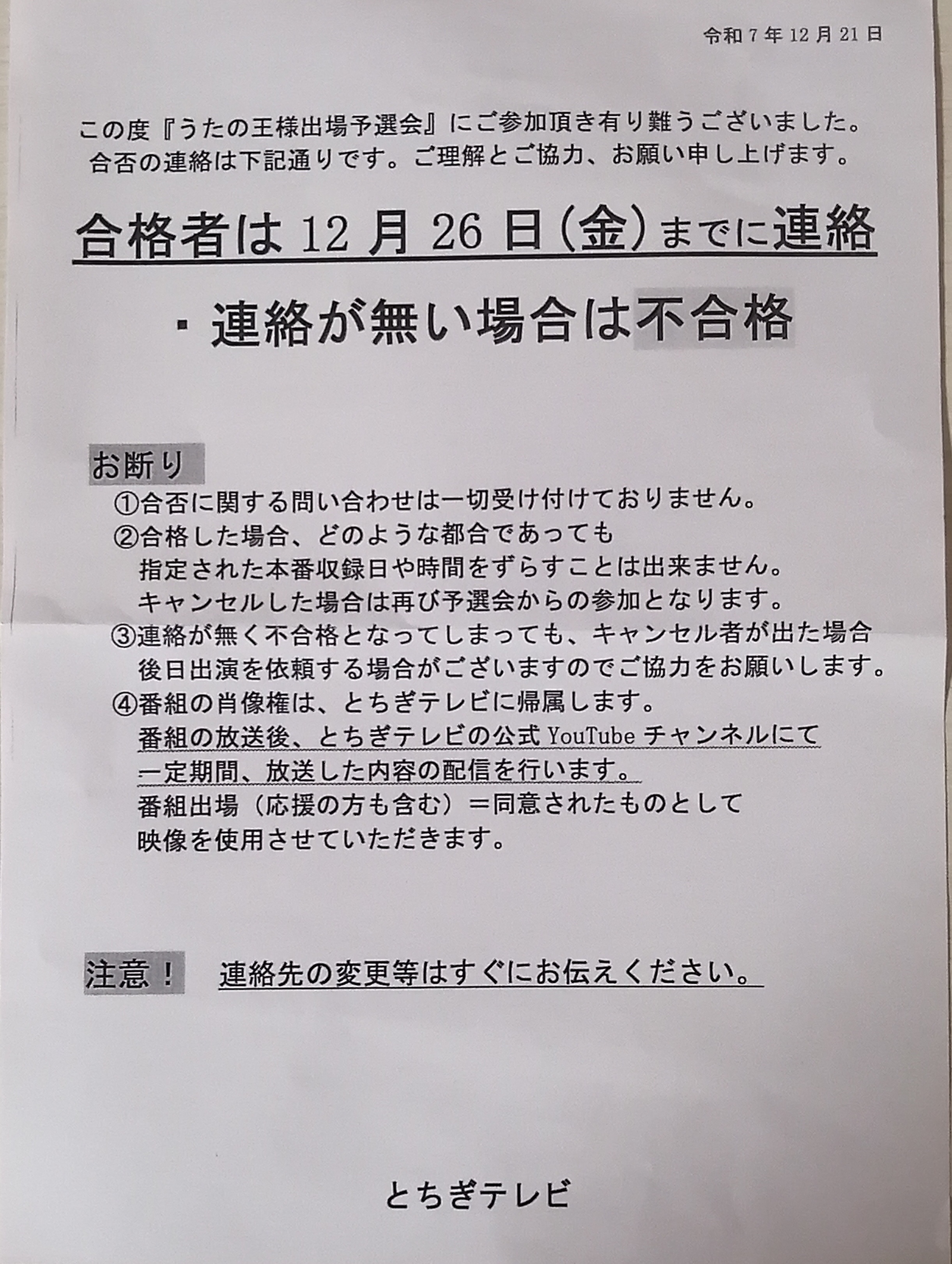 まぁ歌詞飛んだし。予選落ちかなぁと
