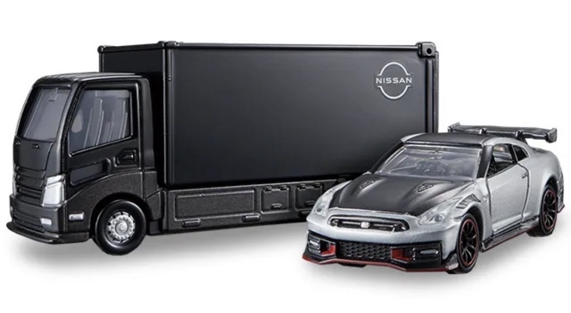 はい、これがGT-R ニスモのトランスポーターです。かっこいいね。ニスモ市販化されてないけどなんか販売されるね。私もジャパンモビリティショーの記念トミカで持ってるけどあけてないよ。だって開けるなって箱から覇気が出てるもん。開けるわけないやん。うったりしねえよ。永久保存版。34も持ってるよ。開けてないけど。