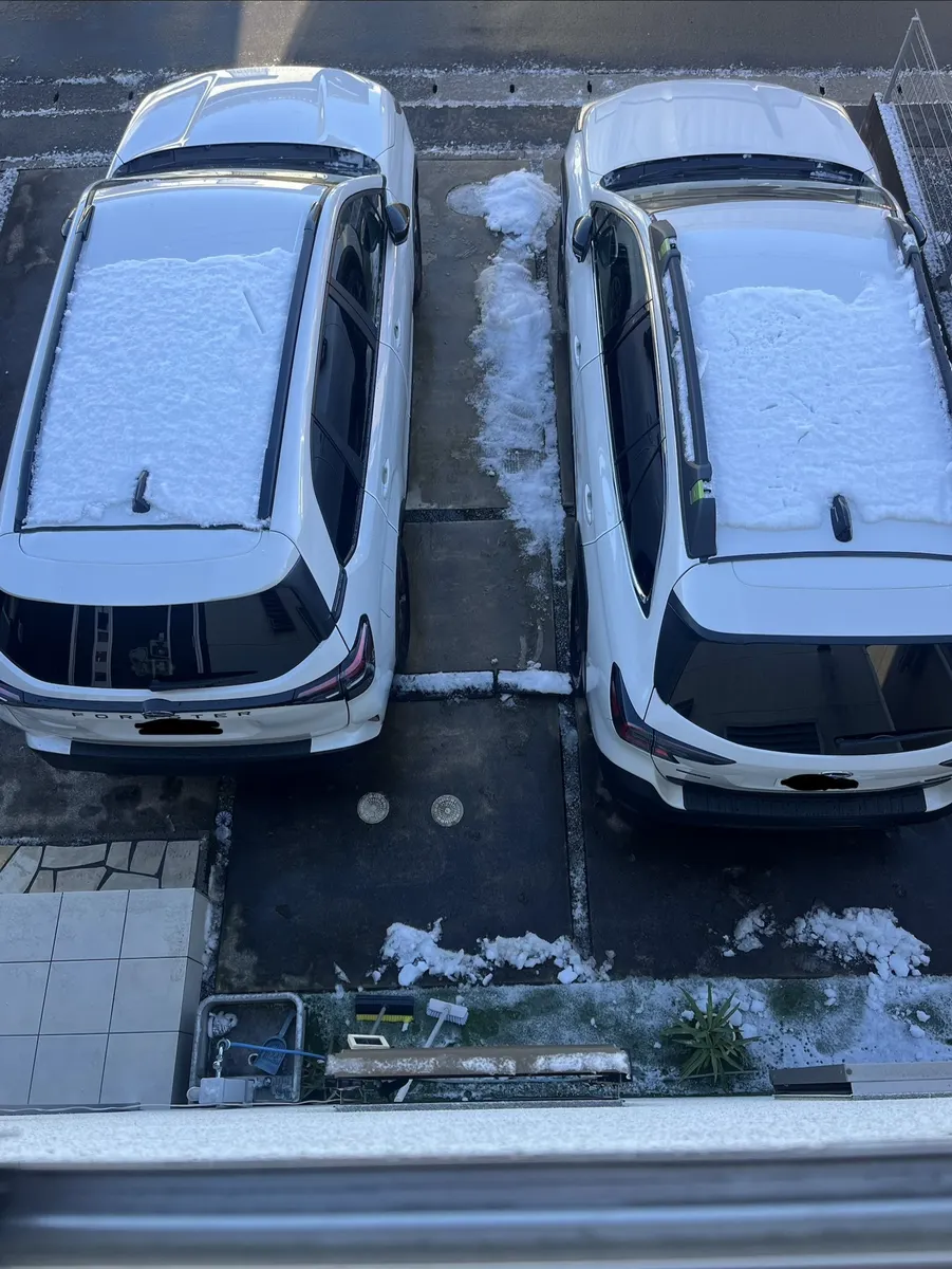 頭の位置を並べて2台眺めてみると、サイズ感こんな感じです。全長はやはりフォレスター短いですが、運転フィーリング的にもう少し小さい車のような感じがします。レスポンスの良さや視界の高さゆえなのでしょう☺️ちなみに家族メインで使うのはフォレスターなのでスペースは広めにし、アウトバックは右つめつめで止めてます。家の前の道が対向車とすれ違いできないほど細い&すぐお向かいさんの敷地なので、アウトバック駐車の際は毎回駐車テスト受けさせられてるようなものです笑