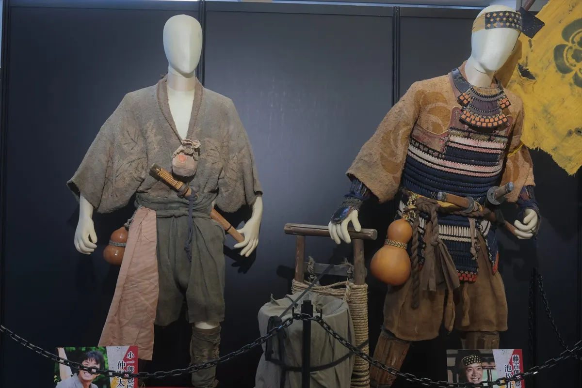 15. 『豊臣兄弟!』より、小一郎(豊臣秀長/仲野太賀さん)と藤吉郎(豊臣秀吉/池松壮亮さん)の劇中衣装。戦乱の世を駆け抜ける兄弟らしい、土の匂いがするようなリアルな質感が再現されています。