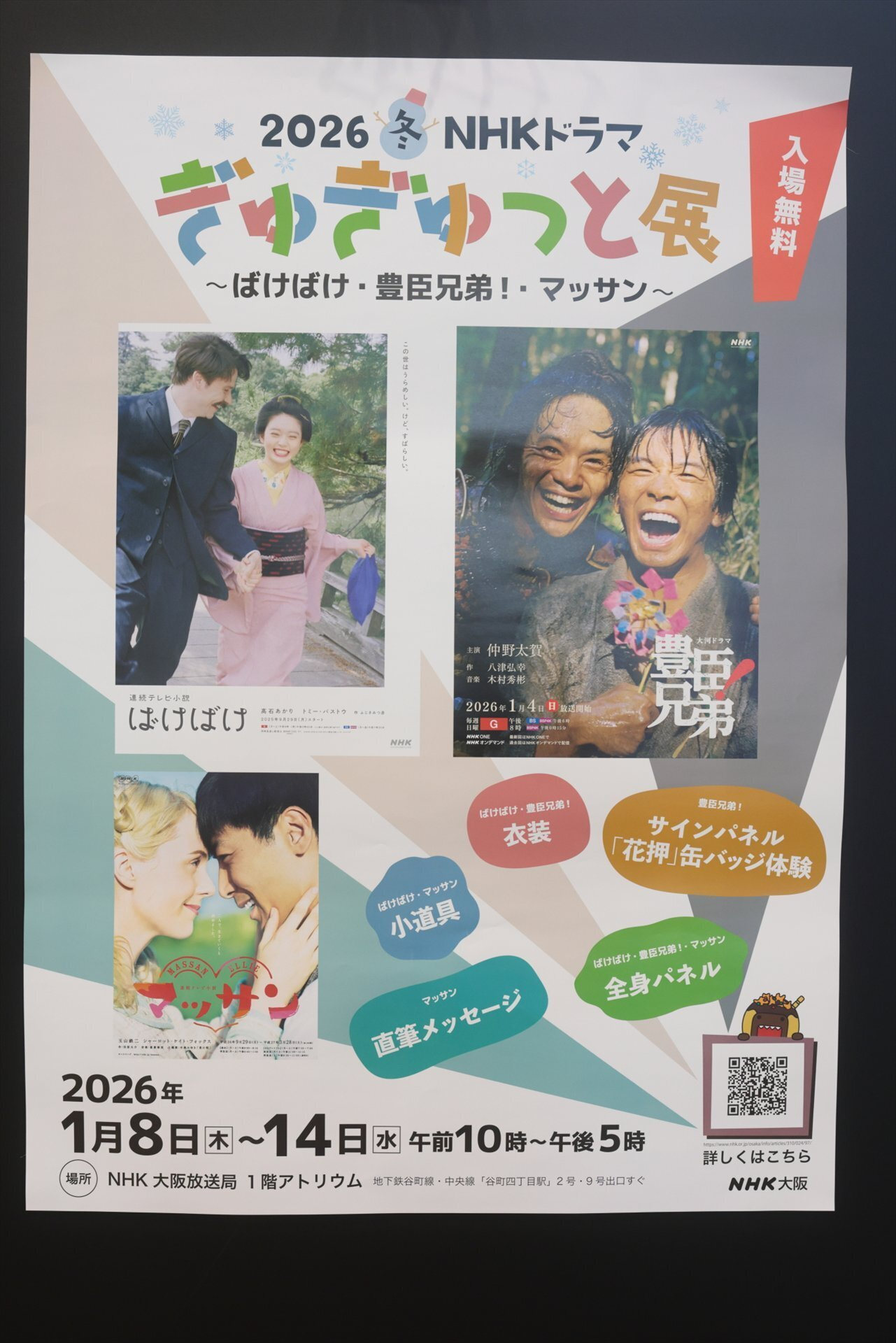 先日、NHK大阪放送局(BKプラザ)で開催されていた「NHKドラマぎゅぎゅっと展」へ足を運んできました。