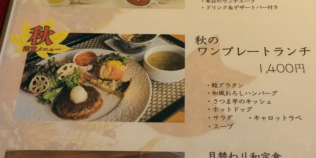 今回は珍しく秋に来られたので、入り口で宣伝されていた「秋のワンプレートランチ」に2人とも惹かれてしまいました❣️