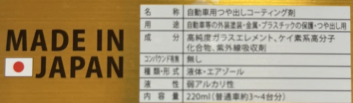 詳しい方は、もうわかっていらっしゃると思いますが、ガラスコーティング剤では無いです。