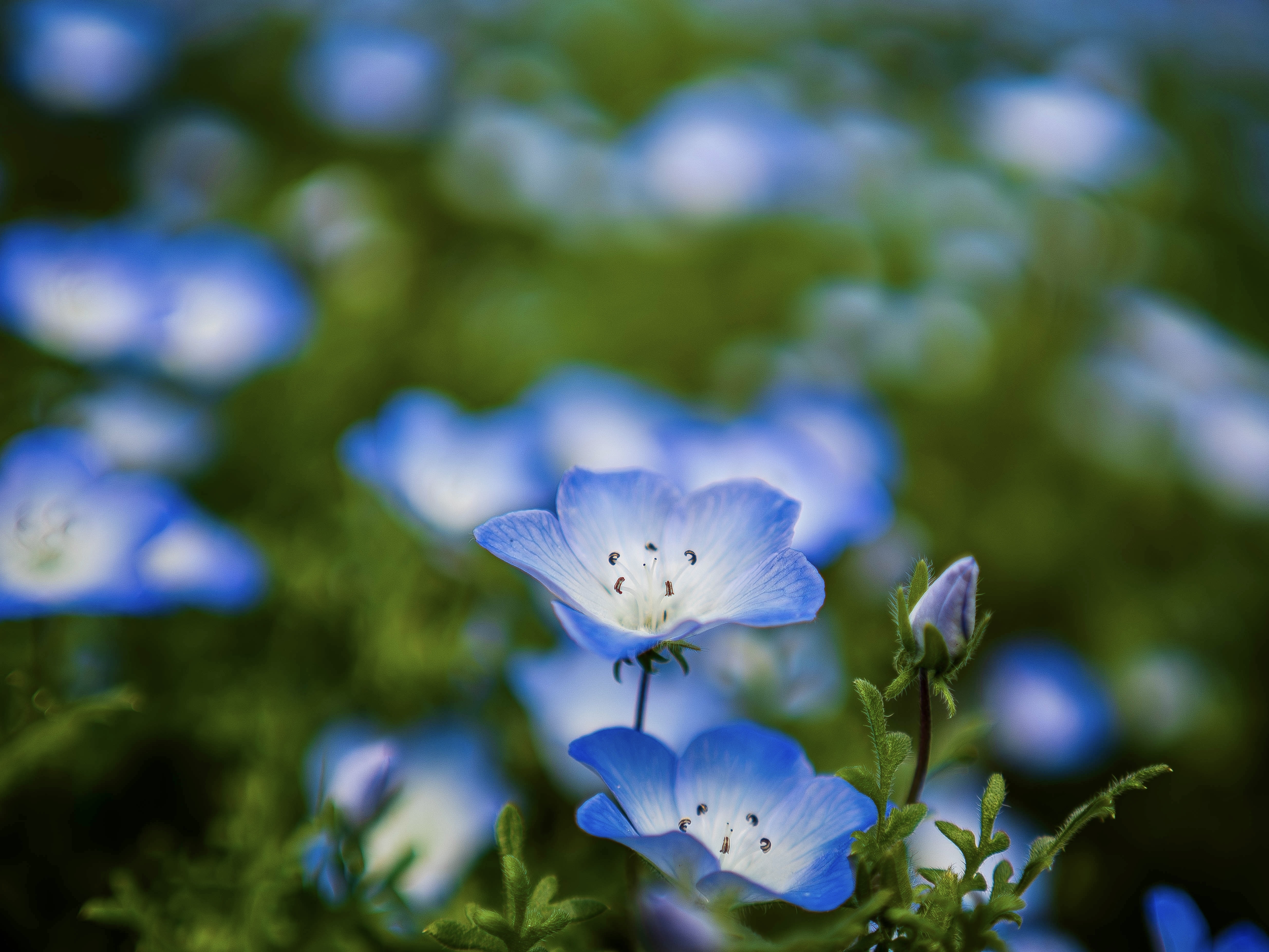 ネモフィラ、アヤメっぽい⁉︎ それぞれ違うアオ🟦が鮮やかですね〜