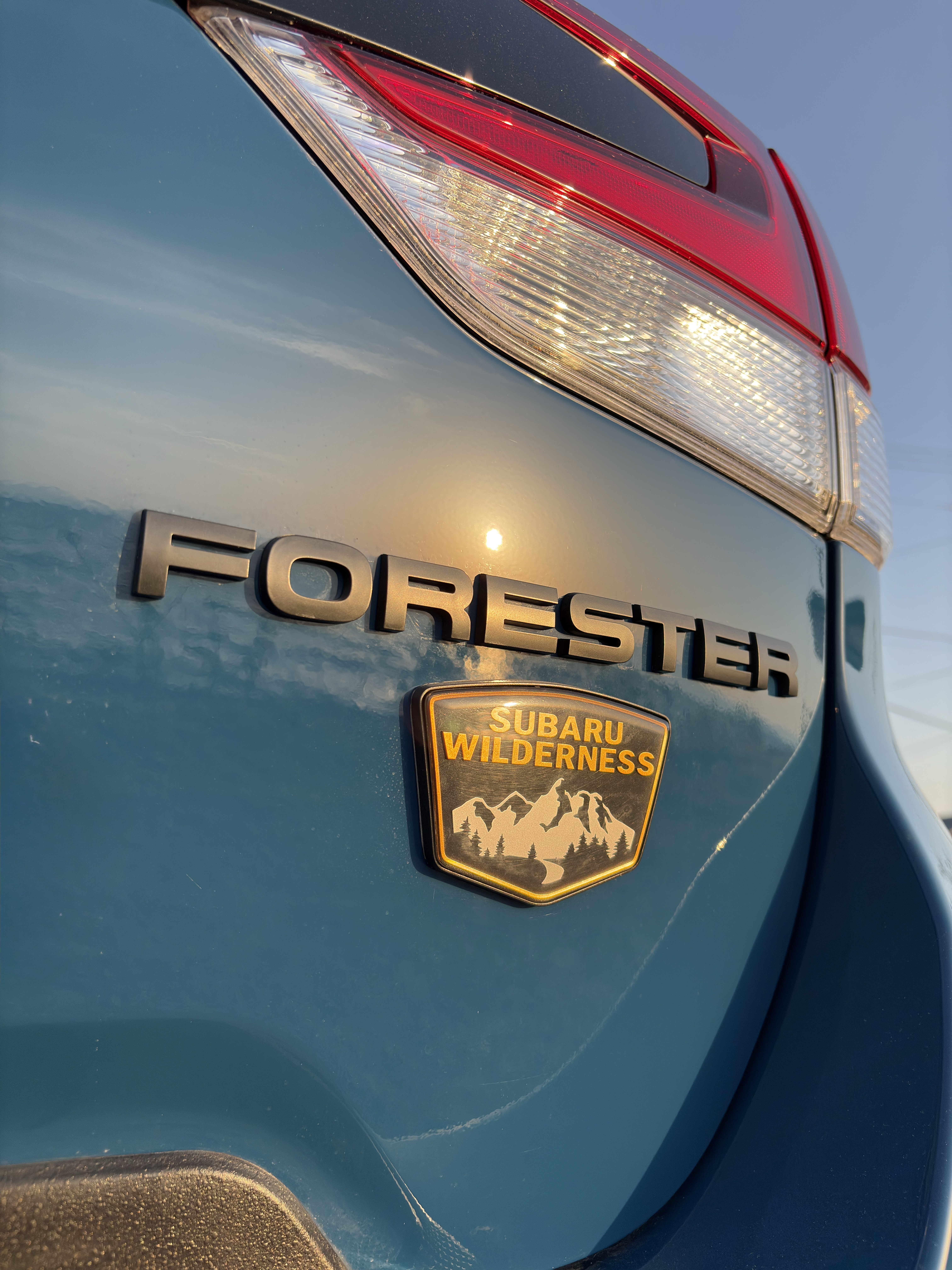 写真は私のフォレスターにエンブレムを貼り付けただけのなんちゃってウィルダネスですが、ウィルダネス専用カラーだったガイザーブルー(国内ではSK後期型のXTeditionとXeditionの専用カラー)なので、まぁ良いだろうと思ってやっちゃいました😅
