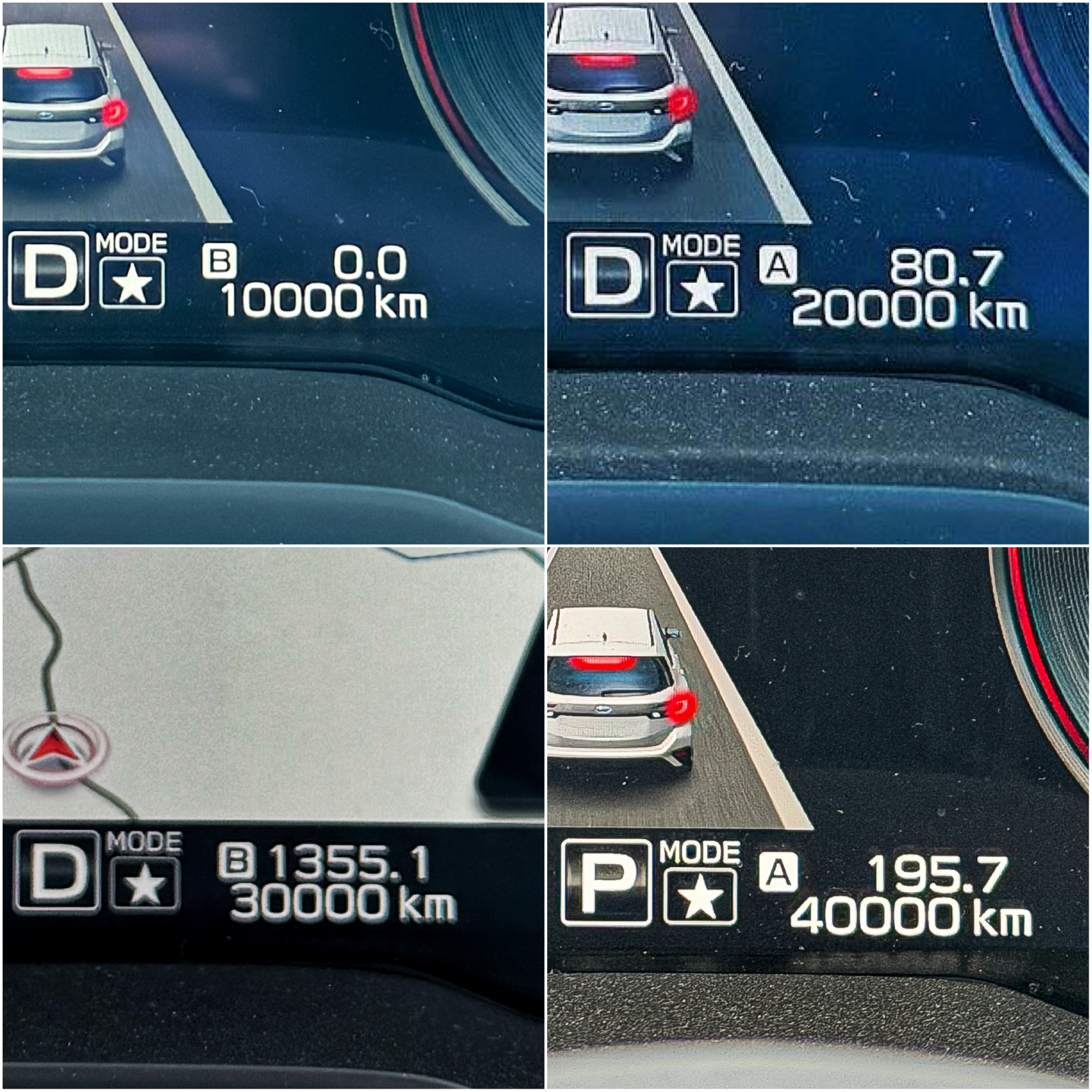 - トリップBは10,000毎に “0” に戻り(桁あふれ)、平均燃費もリセットされます