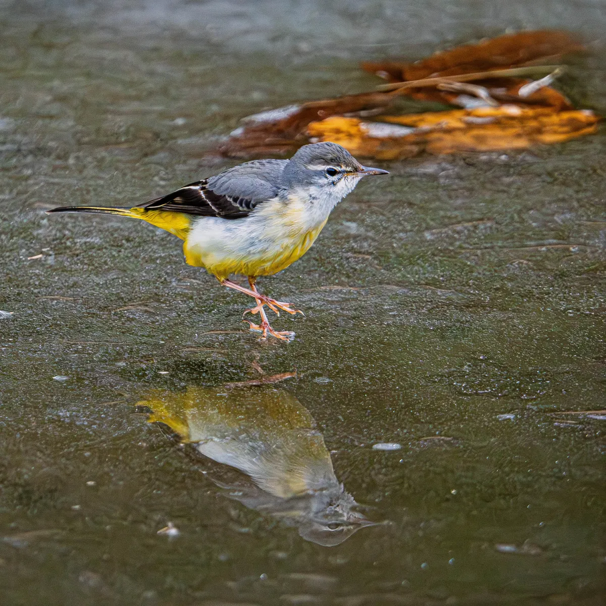 キセキレイが凍った池の上をユーモラスに歩く光景も