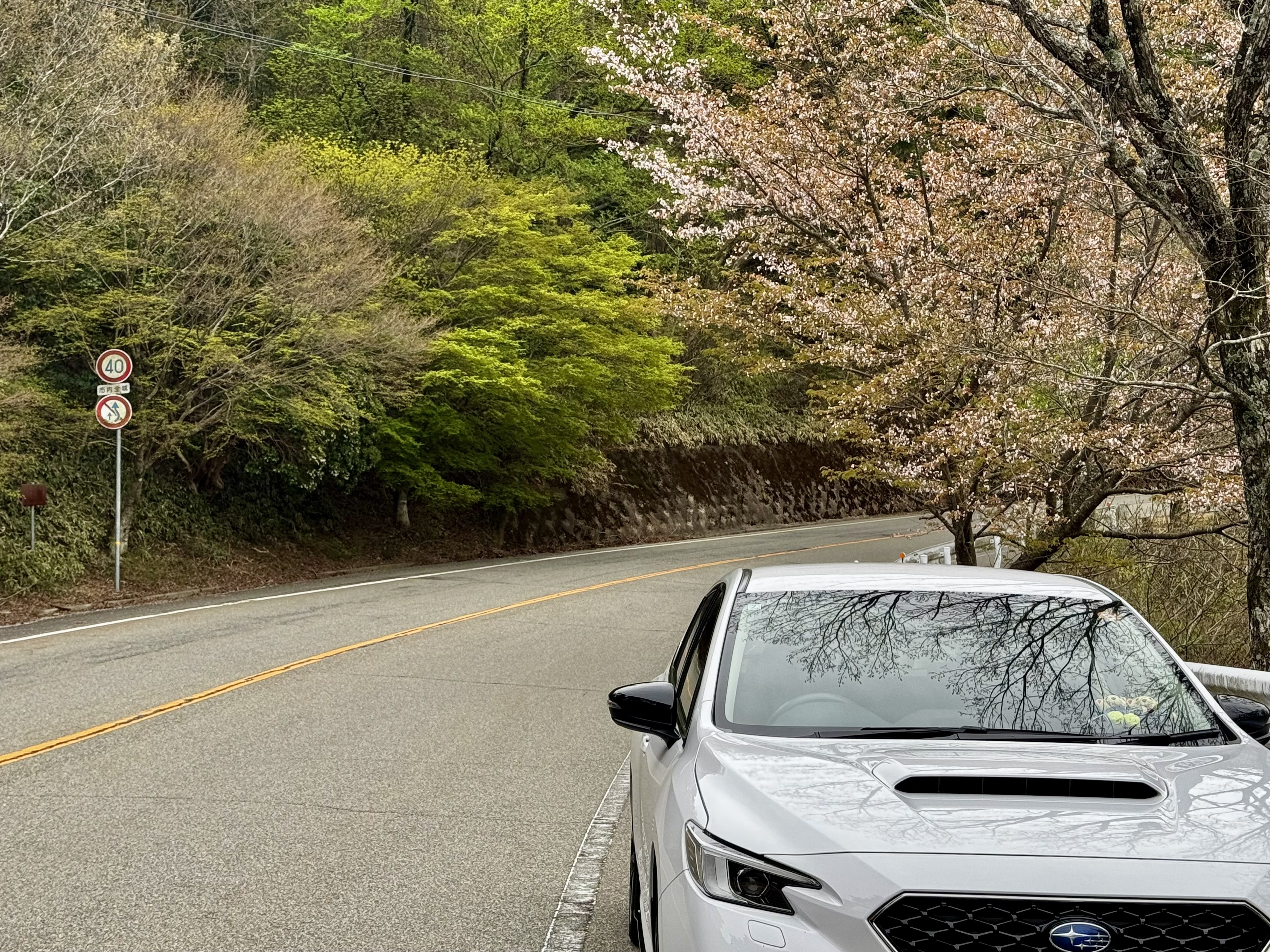 展望台に向かう有芦ドライブウェイの途中、桜の花が少し残ってるのを見つけました。