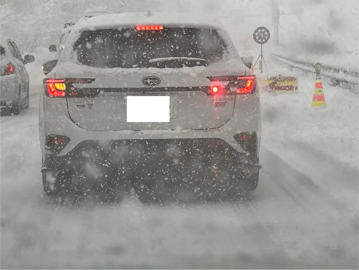前を走るレヴォくんから、雪や氷の塊が飛んでくるので車間距離多めです😅