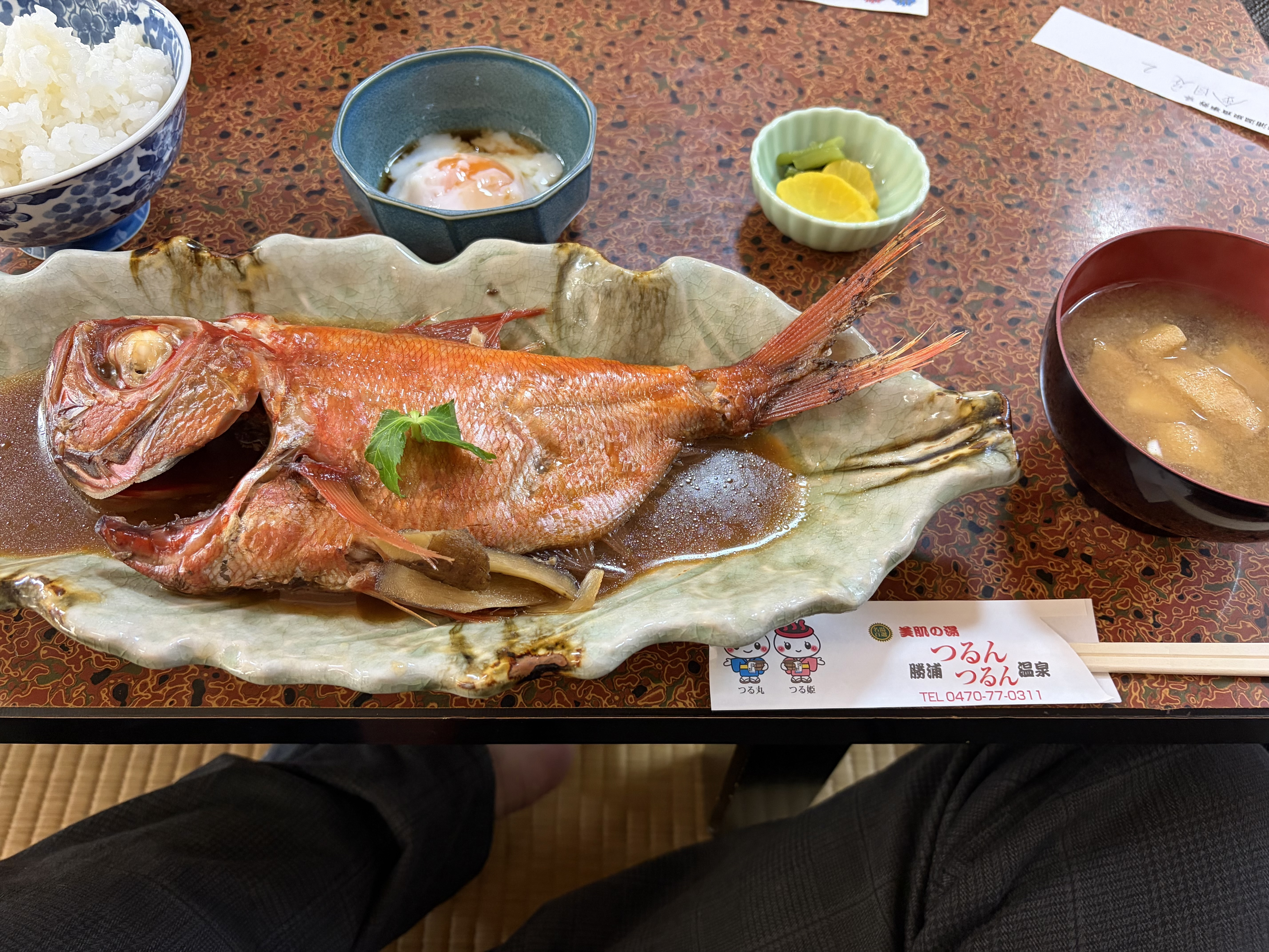 朝食兼昼食で1日7食限定の金目鯛の煮付けをいただきました。