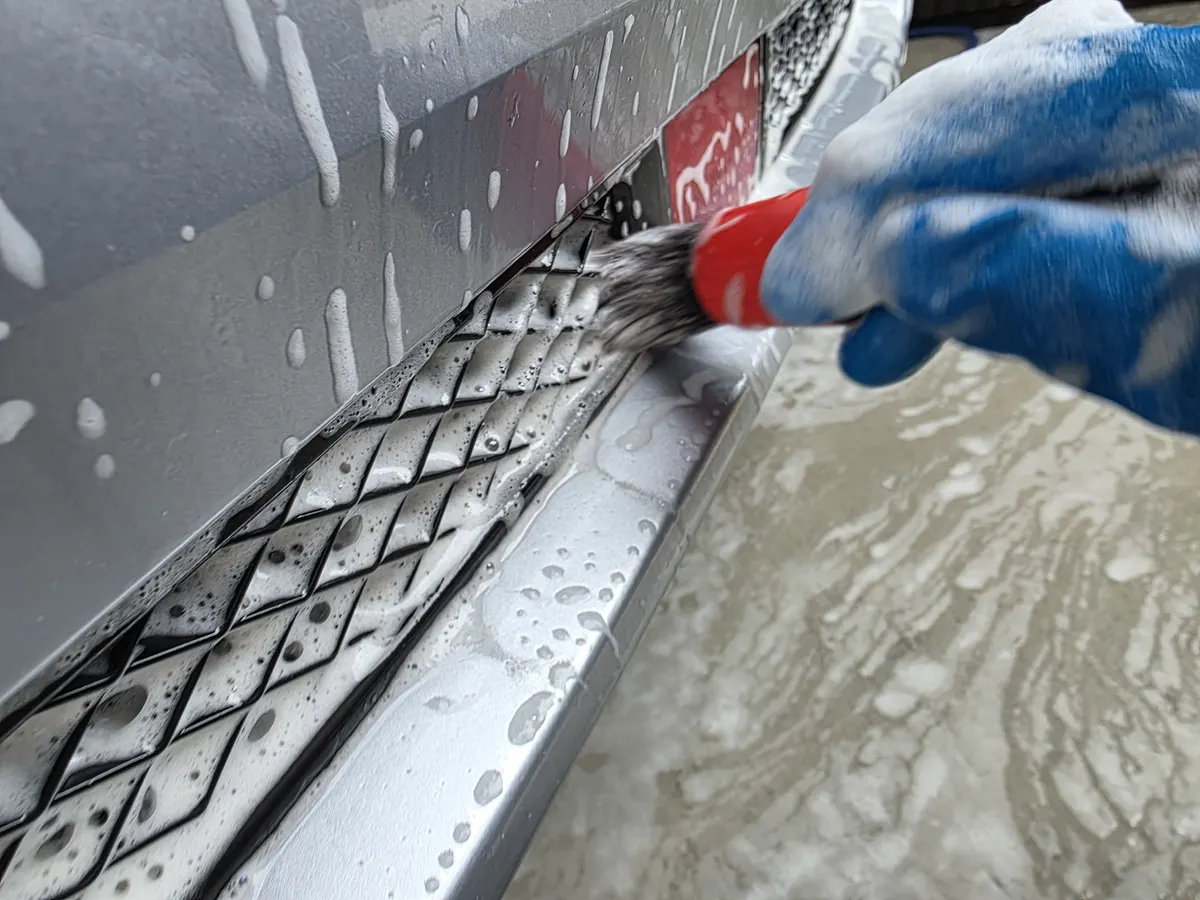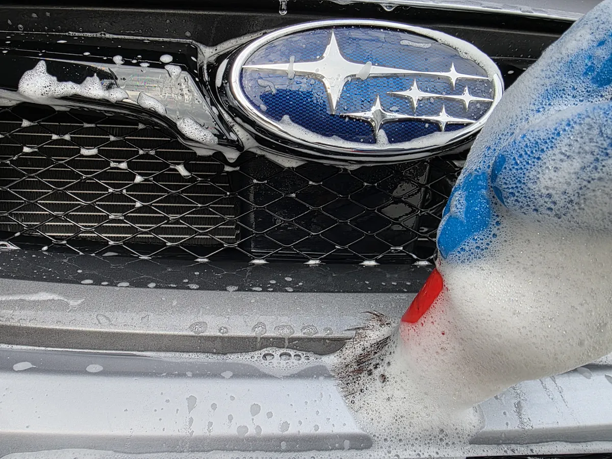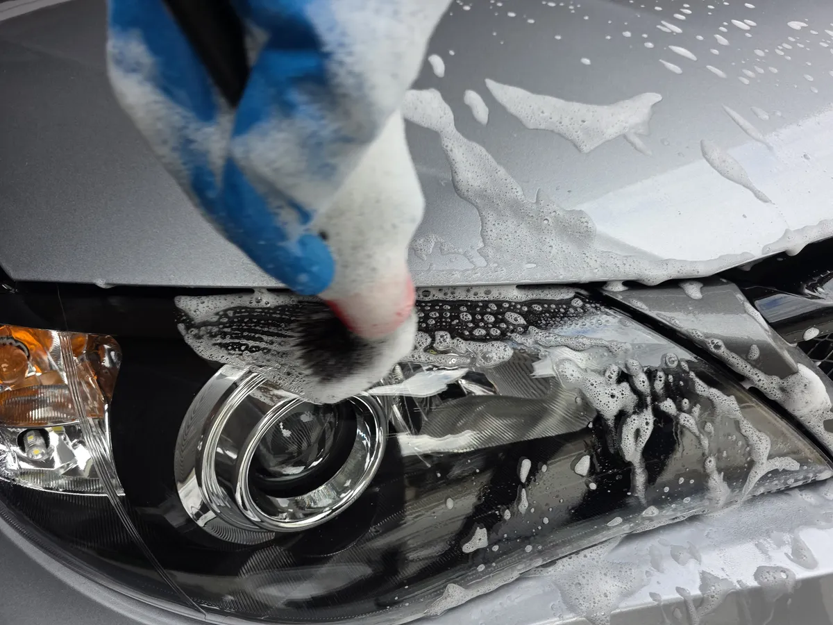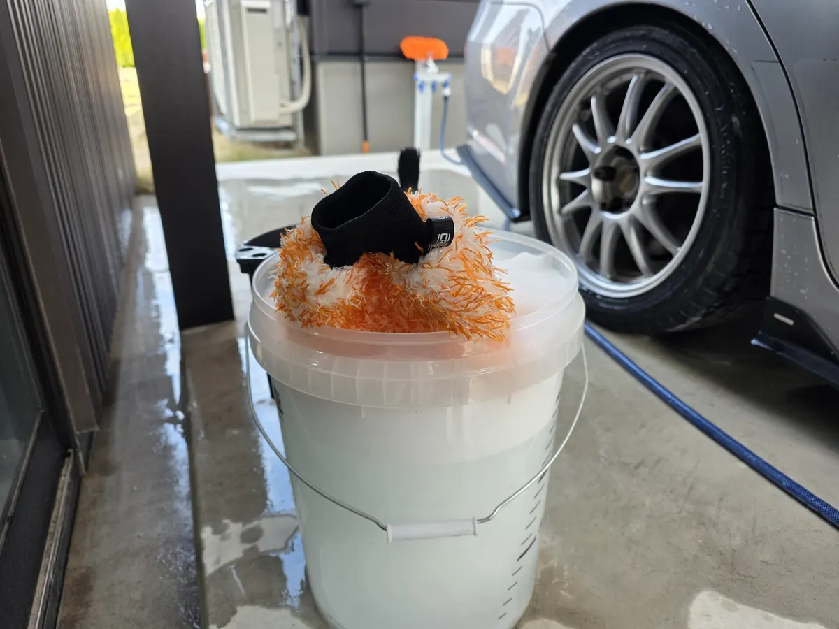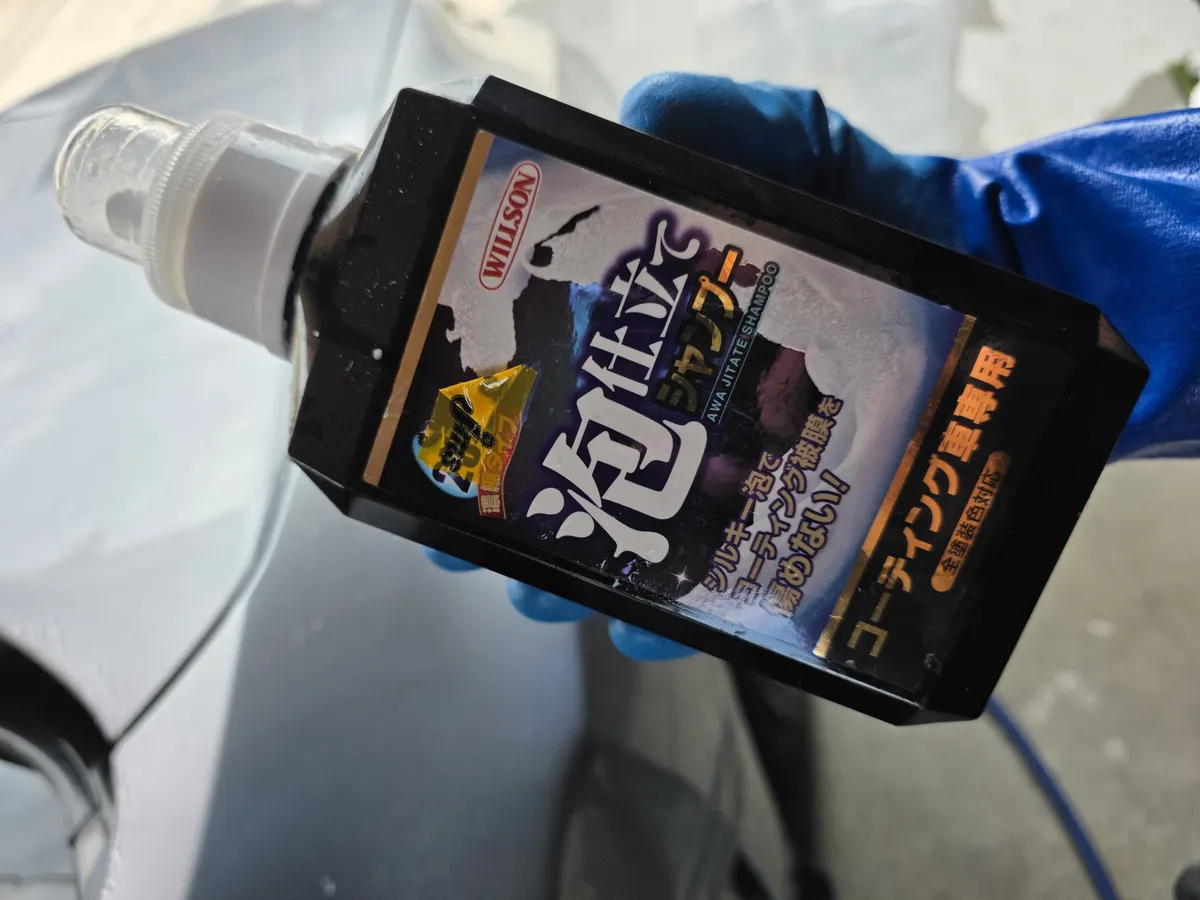 次にガラスコンパウンドの濯ぎを兼ねて全面シャンプー洗車へ。