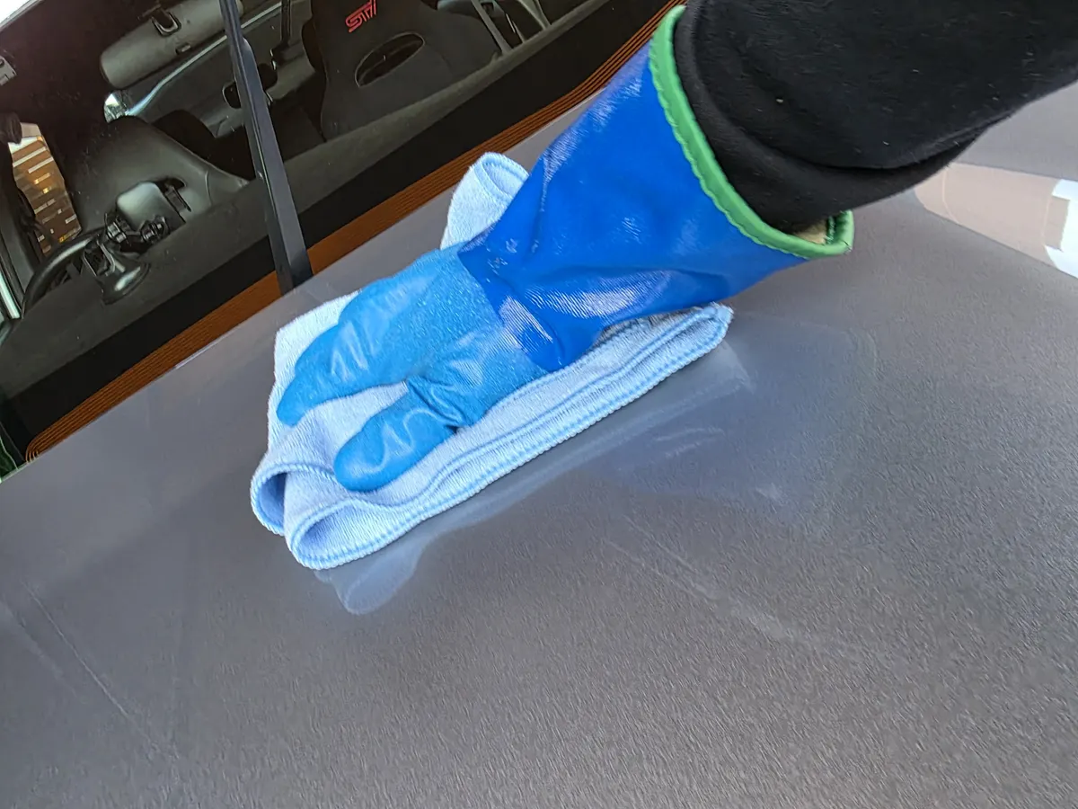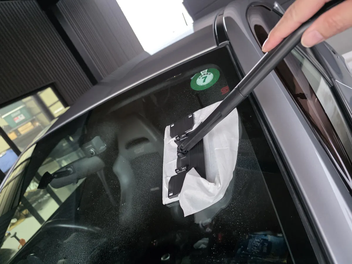 最後の仕上げはモンスターレインスプラッシュでガラス面を撥水加工します。