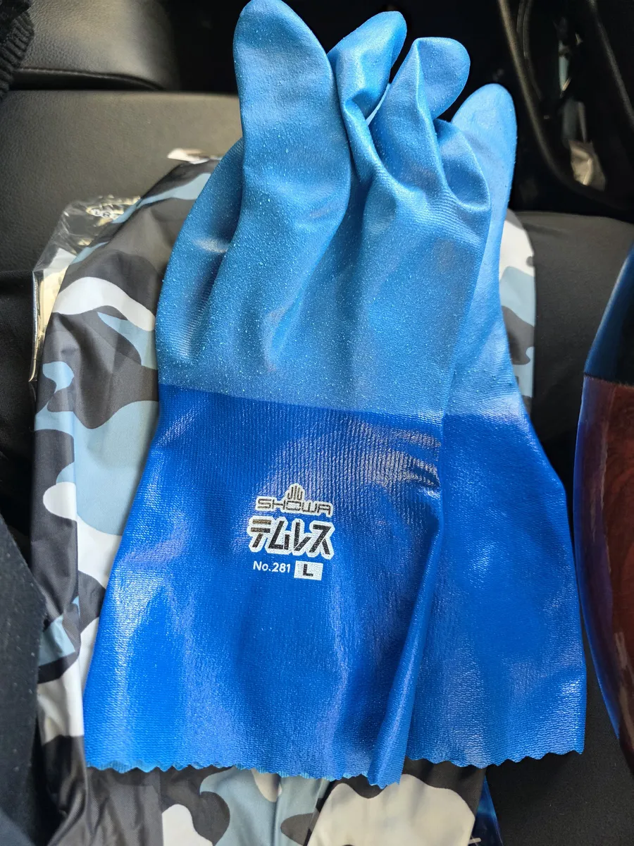 まだ寒いので、防水防寒装備です(笑)。