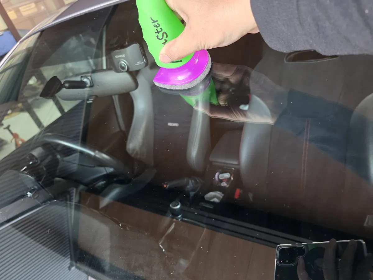 モンスターリセットはスポンジもコンパウンドも使い易く、力入れずともガラス面の抵抗がスルスル小さくなっていく感触が手に取るように分かります!