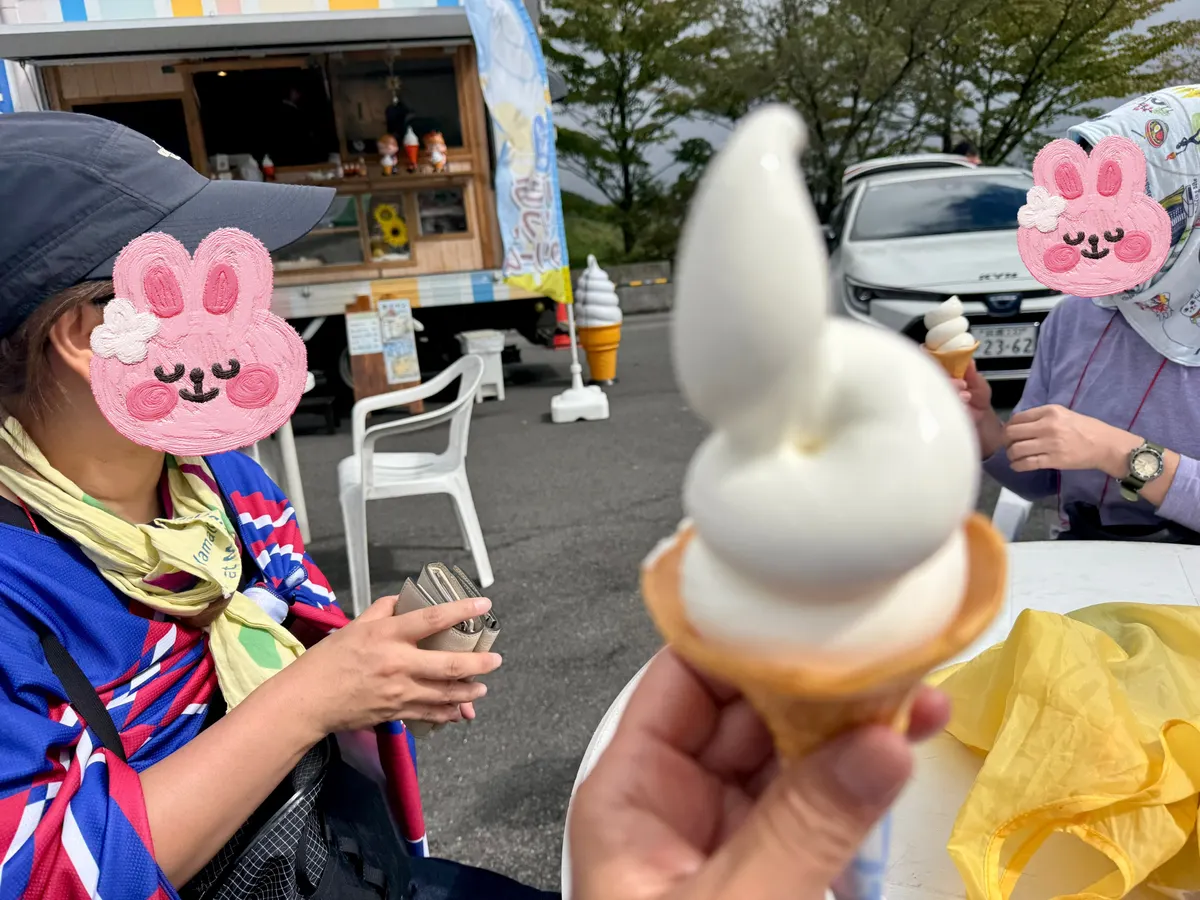 雨予想で帽子を持って来なかったhanaさんはタオルを頭に巻いて、お気に入りの様子😆