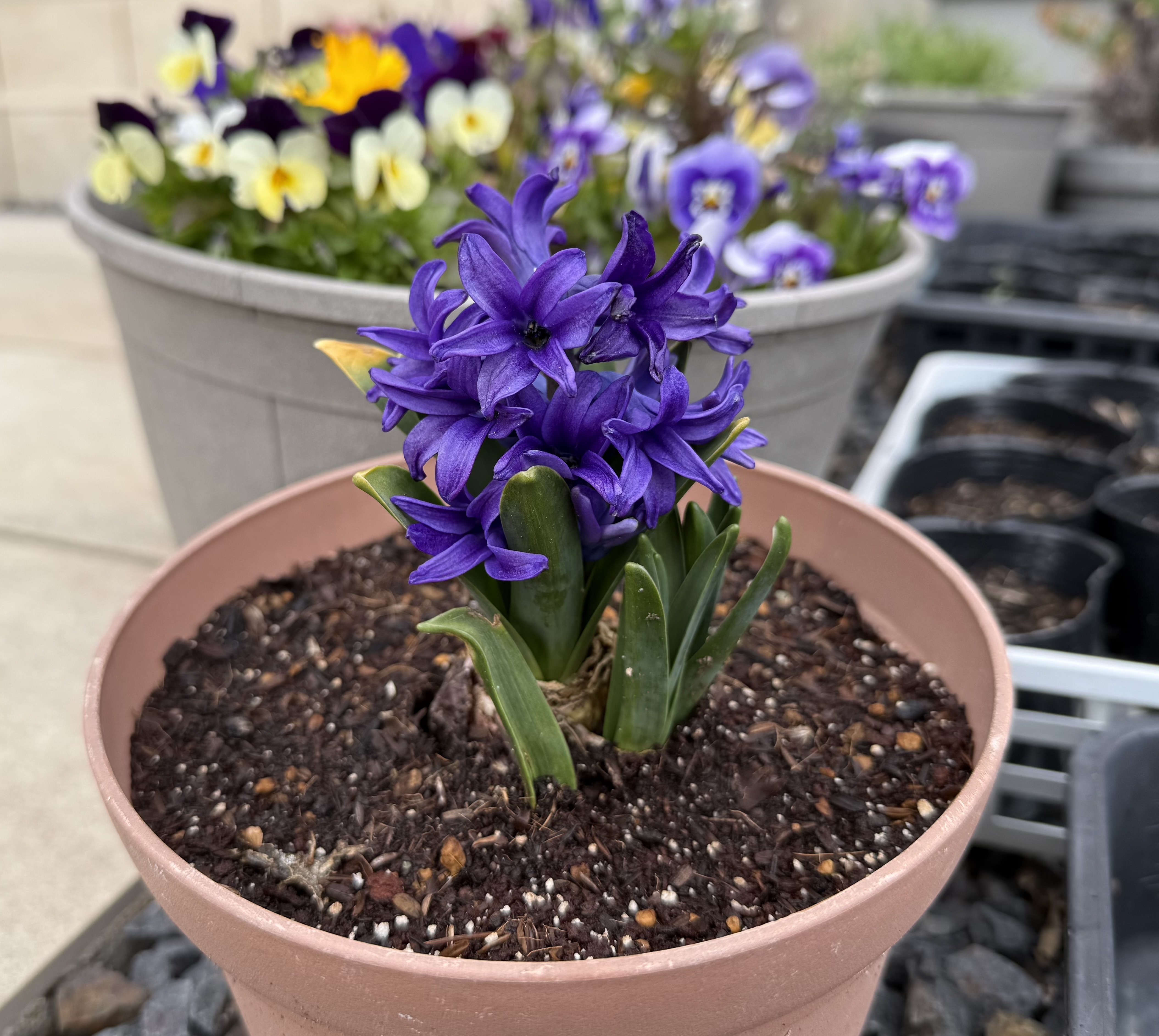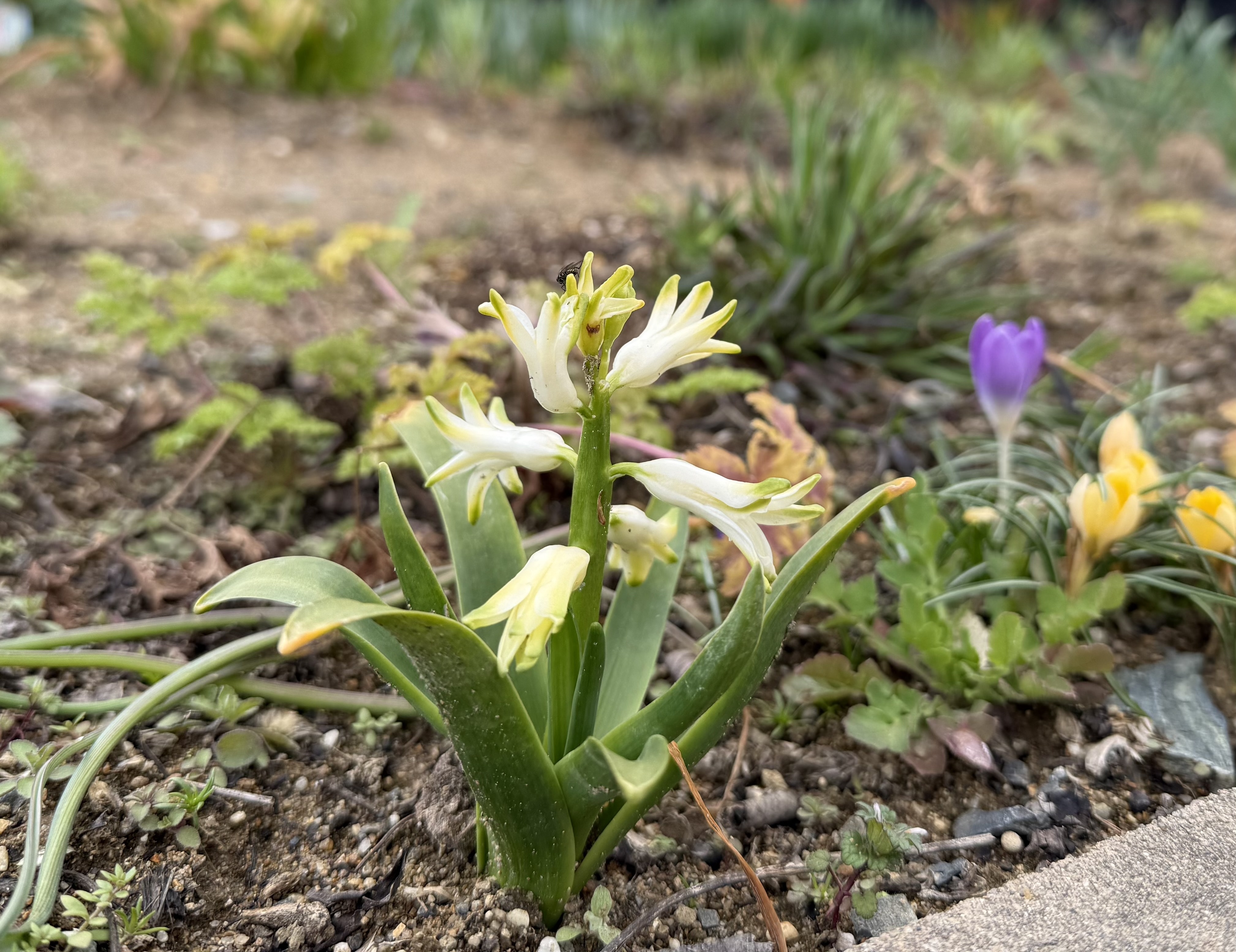 こちらのヒヤシンスはアリッサムのプランターから頭を出していた、昨年の生き残りの球根を植え替えた子です🪻