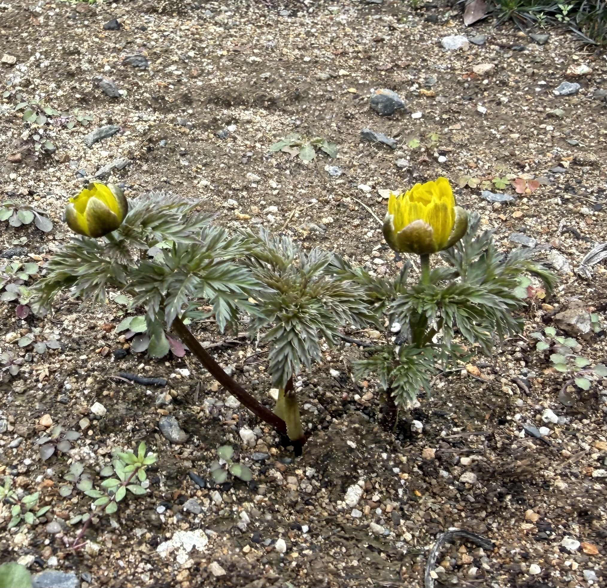 昨年年明けに植えた福寿草も全く顔を出さずに諦めていたのですが、一株だけ生き残っていました!(アイキャッチ画像)