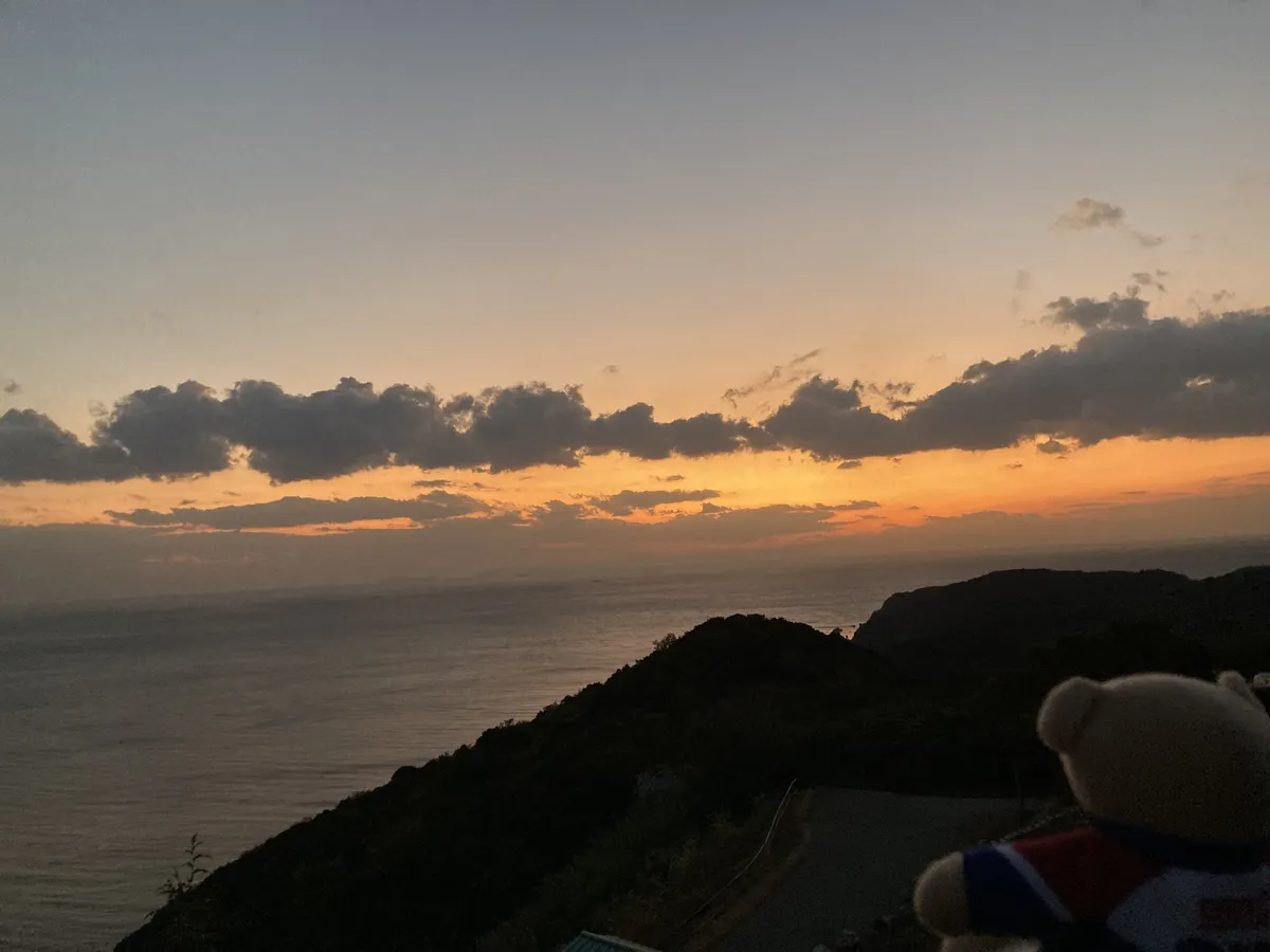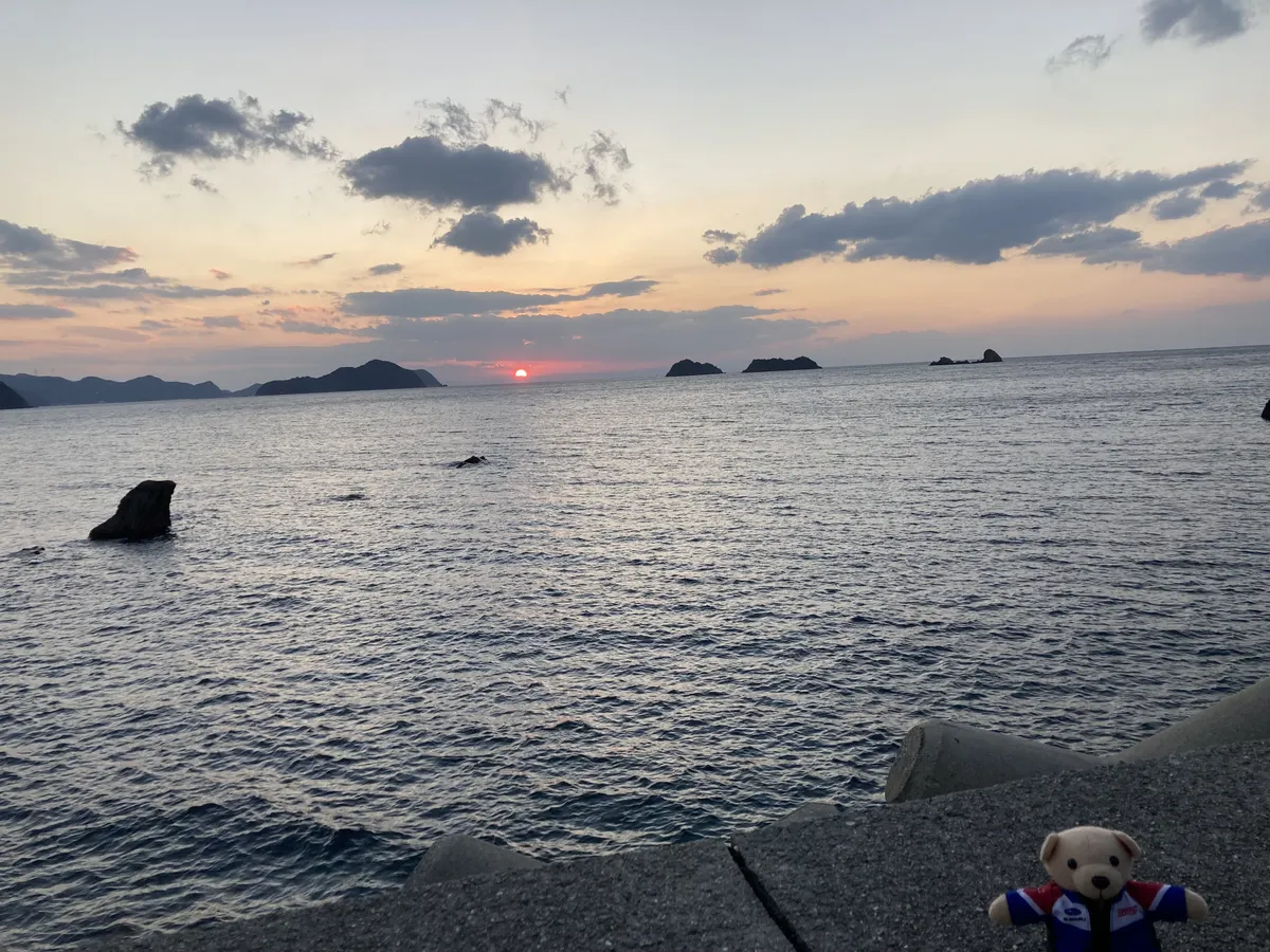 ちょうどおひさんが海に沈む時刻。和歌山県の朝日夕陽百選にも選ばれているとのこと。